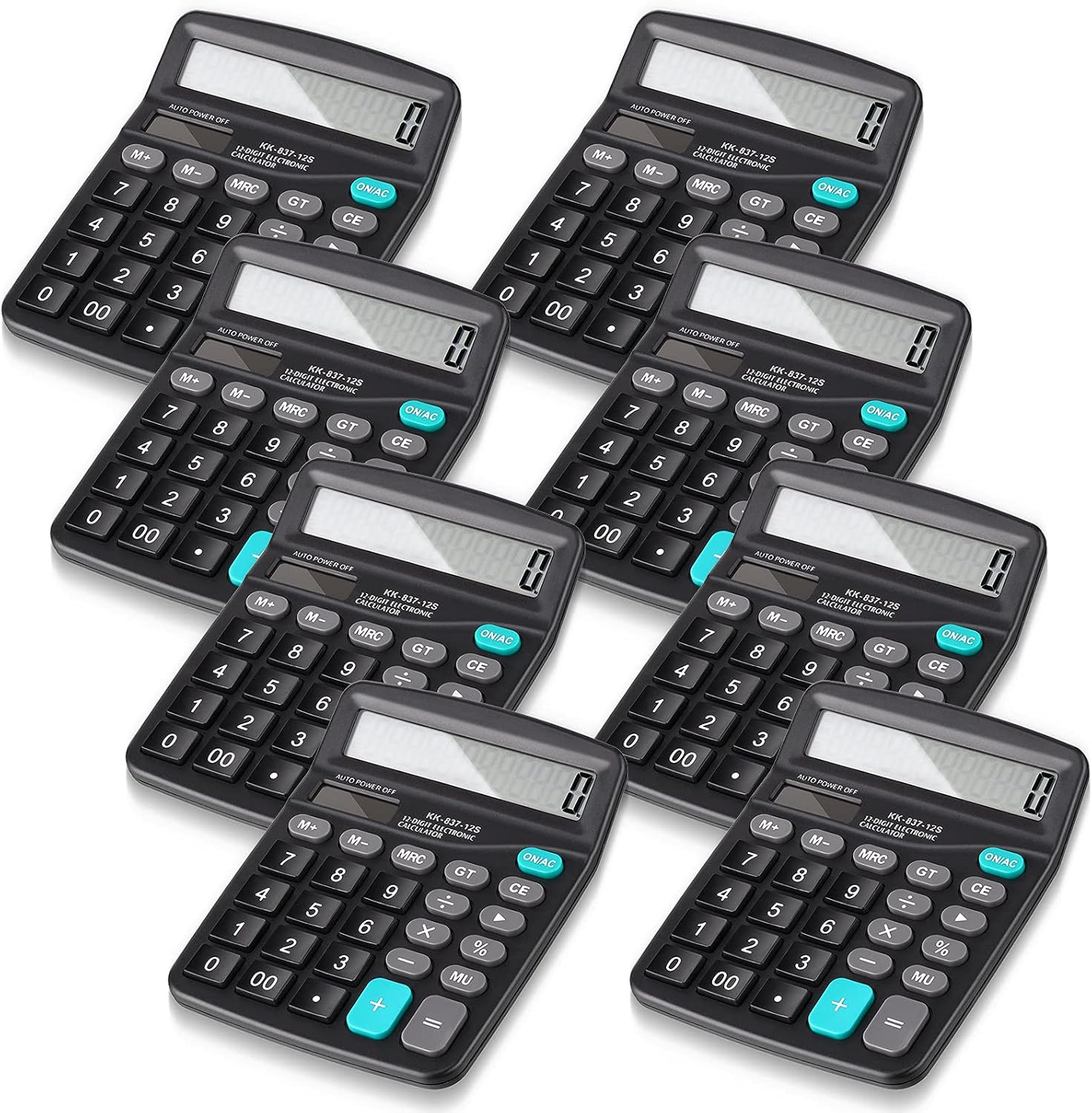 Konohan 8 Pieces 12-Digit Calculator, Solar Basic Desktop Calculator Large Display Electronic Dual Power Handheld for Home Office School(Black)
