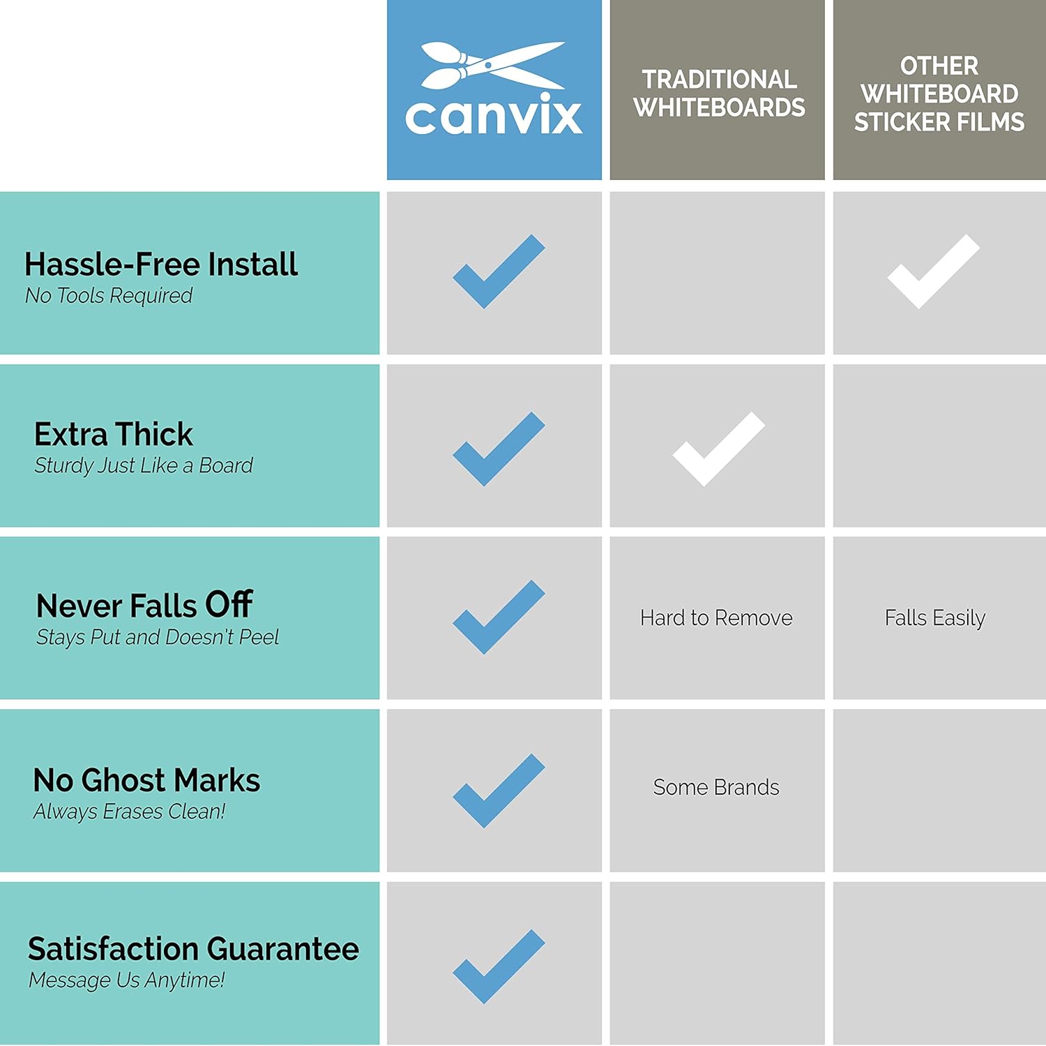 - NO GHOSTING – Never leaves marks from previous use, no matter how long they’ve been written on board