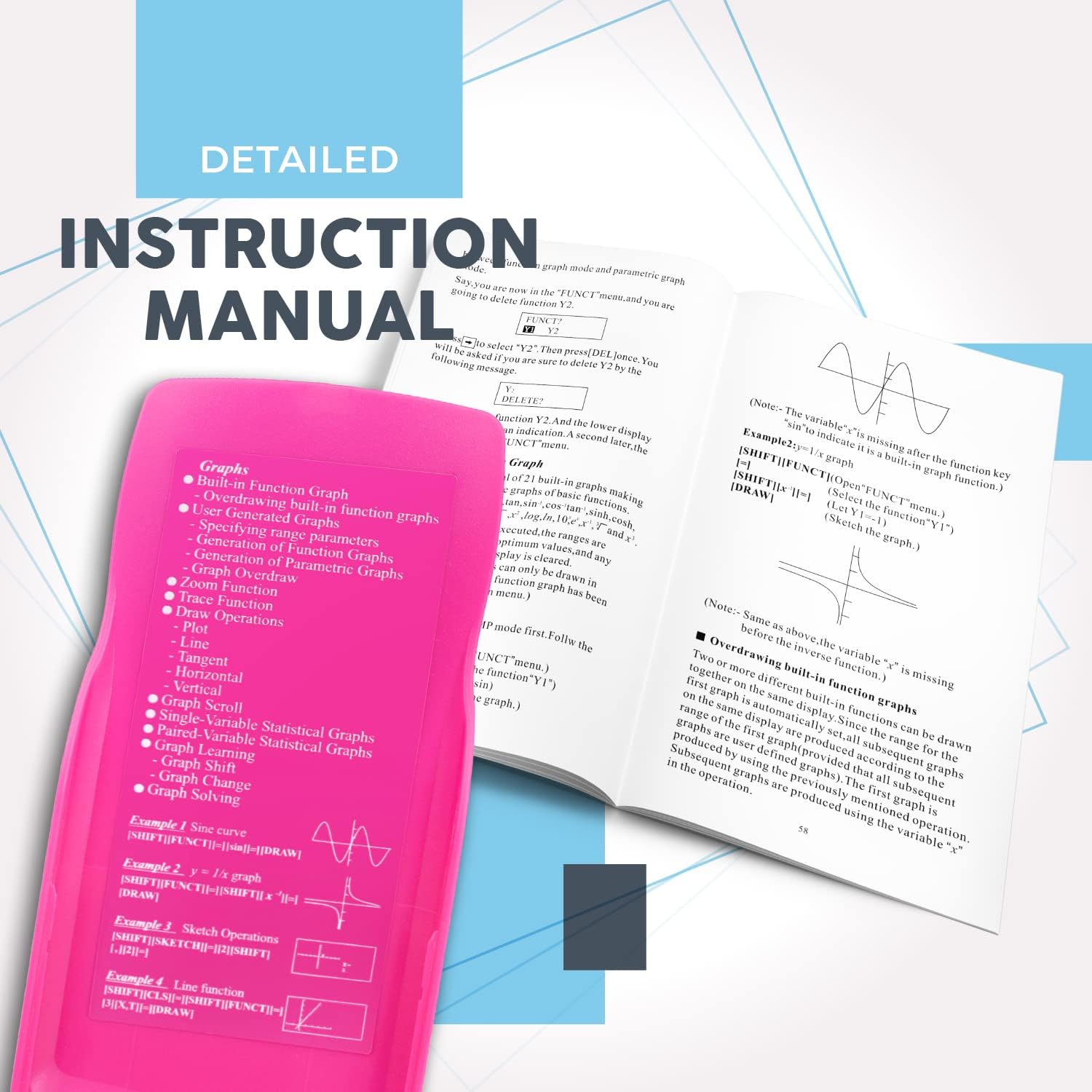 - 【Scientific Calculator with Graphic Function】This is a scientific calculator that can display charts of formulas. It has a screen large enough to display diagrams and equations at the same time, allowing you to view calculations and corrections in detail. The size 7 x 3.3 ensures comfortable operation.