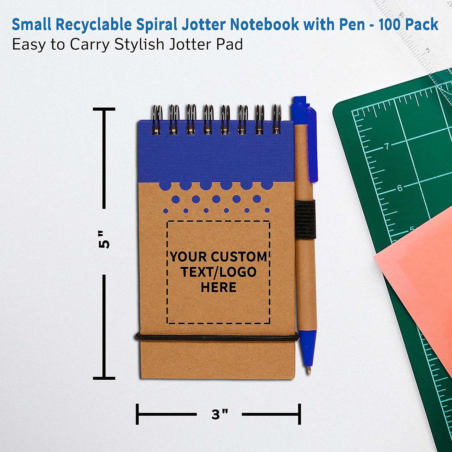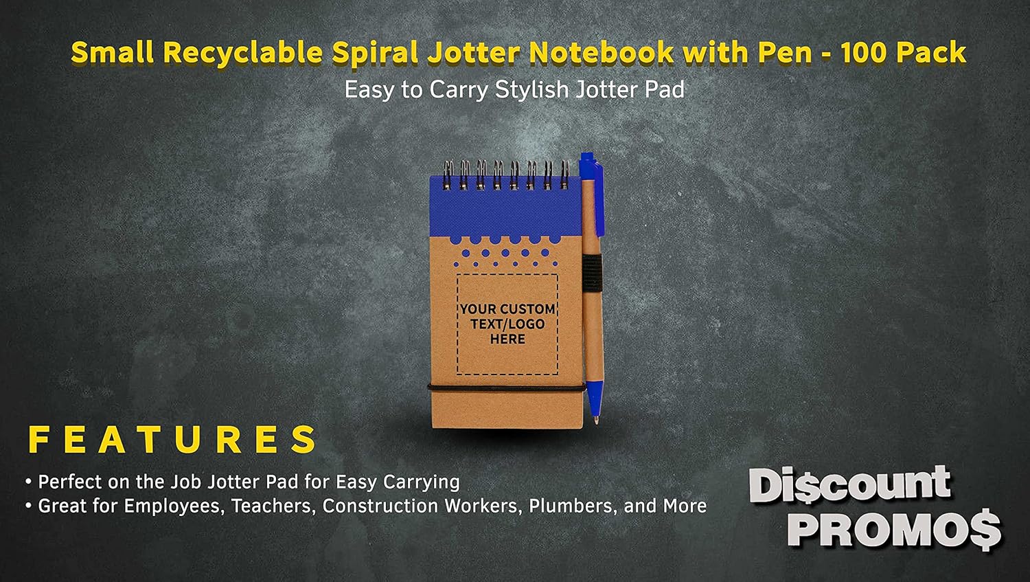DISCOUNT PROMOS 100 Recyclable Spiral Small Notebooks Pack - Customizable Text, Logo - 60 Lined Pages - Blue