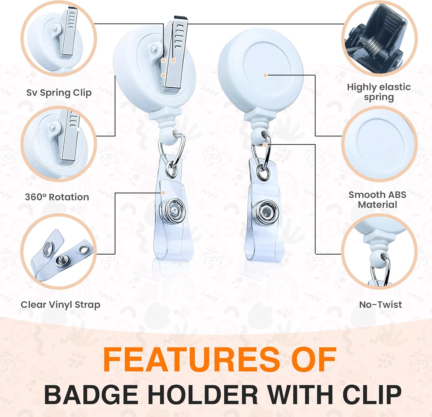 • 【MULTI DIRECTION ROTATION OF RETRACTABLE CLIP】: Id badge retractable clip’s alligator clip reel-360 ° Swivel clip makes key card holder retractable to extend smoothly no matter up, down, left or right. Name badge clips retractable are suitable for hospitals, schools, offices, factories, seminars, company activities, safety maintenance. Great for nurses, maintenance, medical and office staff, security staff, teachers, students, custodians, factory workers and employees etc