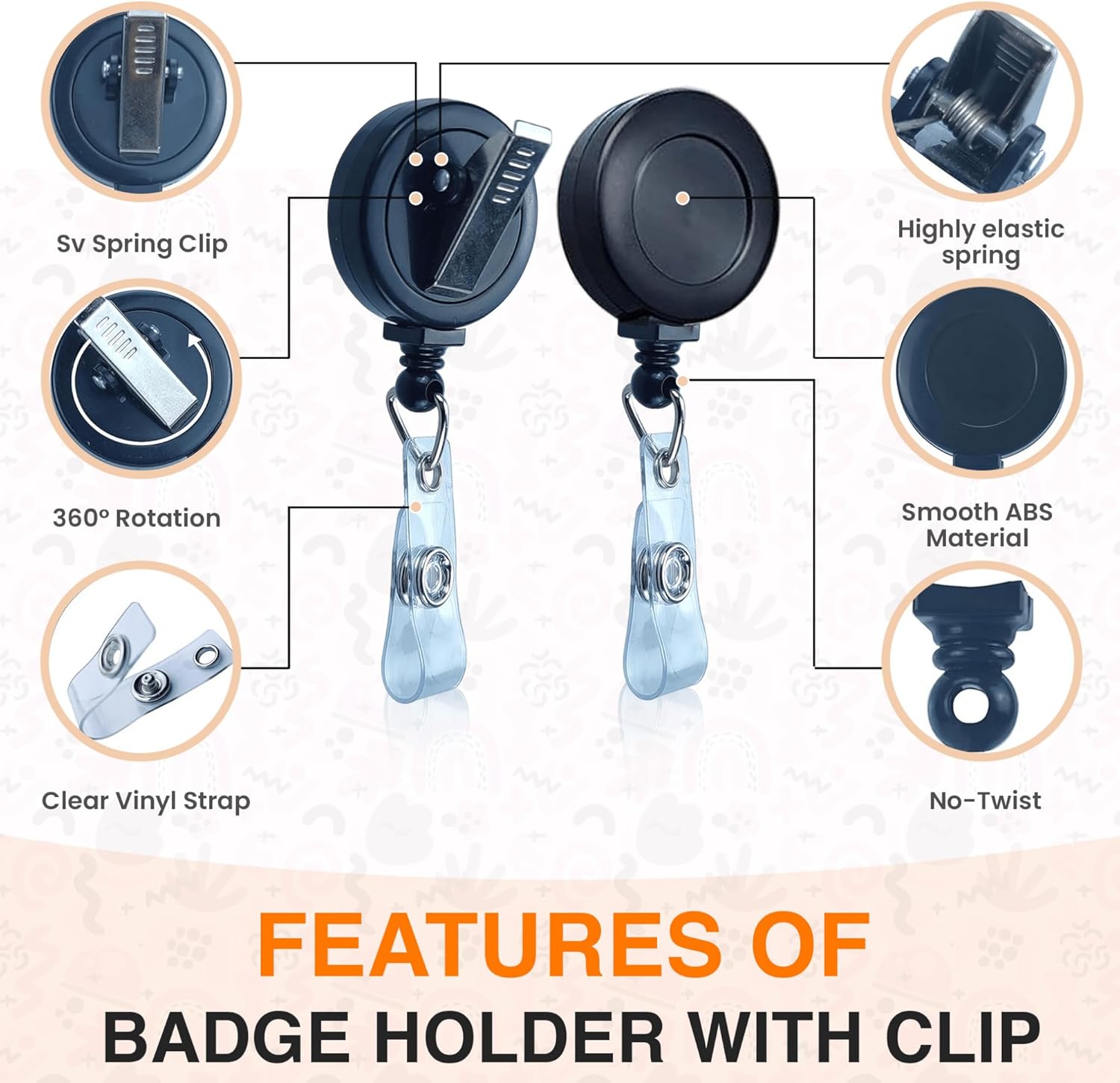 - 【BADGE REELS RETRACTABLE PACKAGING】: Id badge clip retractable are processed carefully and each badge holder is packed in plastic bags separately, and finally placed in beautiful boxes to provide maximum protection and reduce damage during transportation. If after purchase you come across any problem, please feel free to contact with us