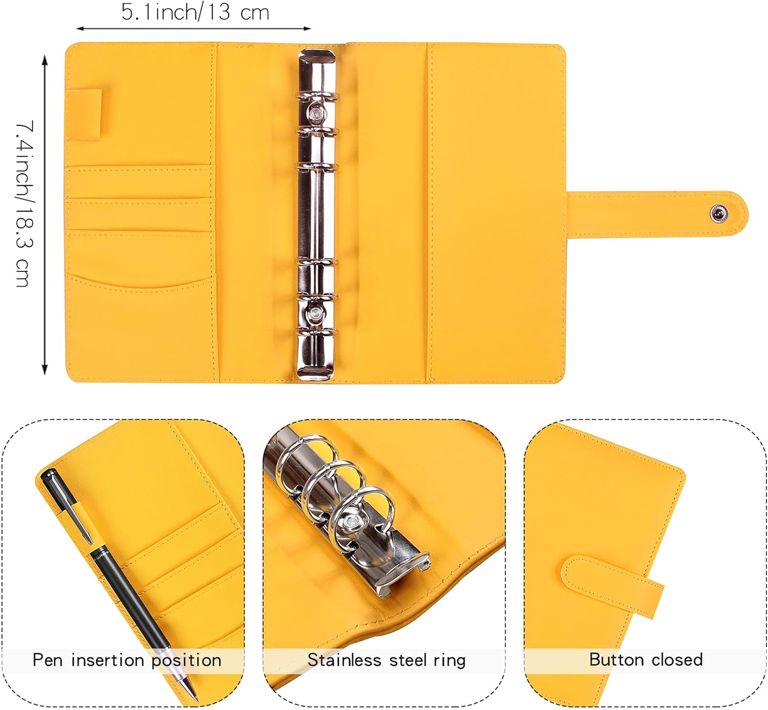 - PU Leather A6 Budget Binder: Money saving binder is made of high quality PU leather material, with 6 stainless steel rings to flexibly adjust the items, and strong magnetic fasteners to keep the envelope binder tightly closed. Inside multifunctional hidden compartment and pen sleeve, can conveniently organize pens, ID cards, passports, bank cards, shopping cards, business cards.
