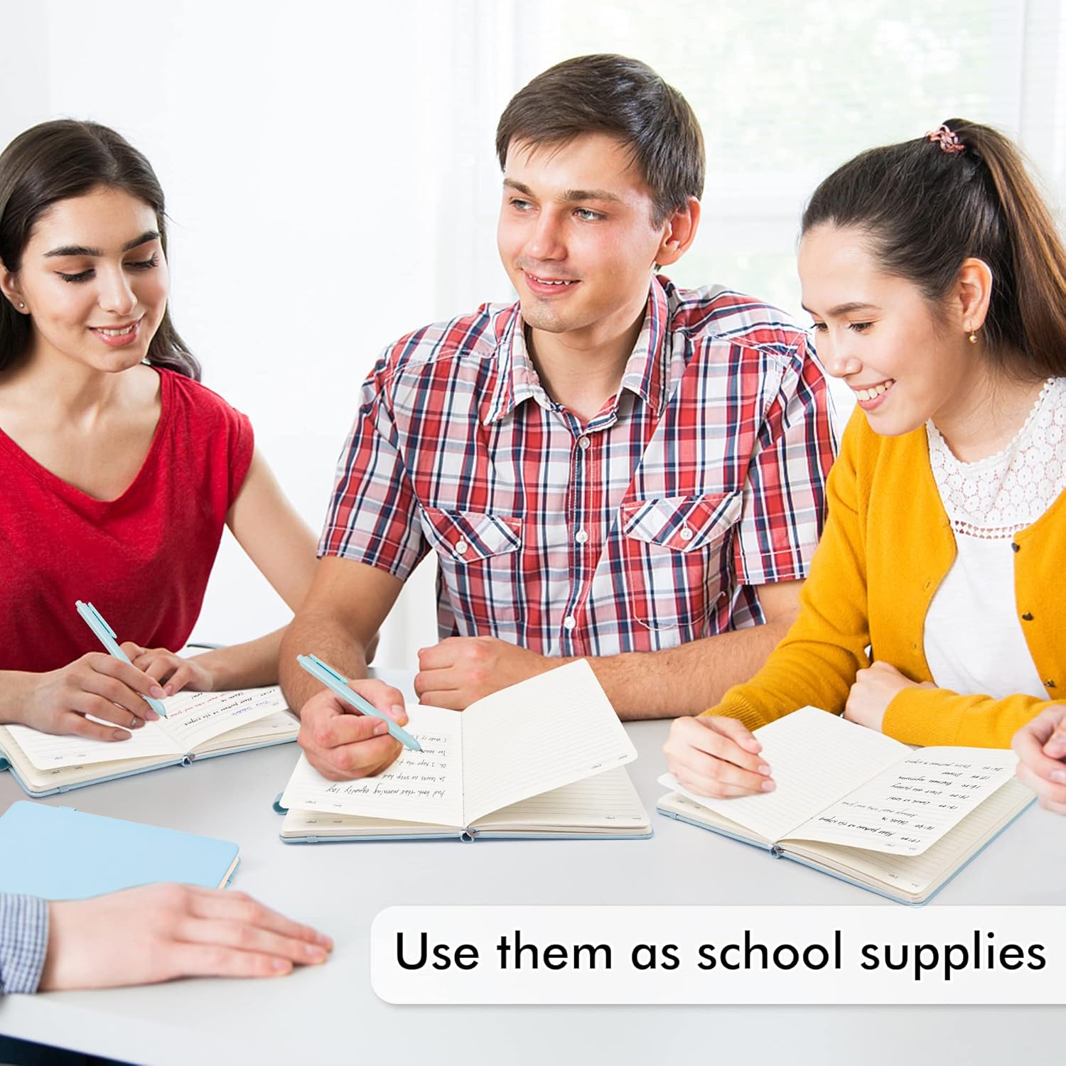 - Feela 12 Pack Classic Ruled Notebooks contains 12 classic light blue ruled sturdy cover notebooks and 12 Black Retractable Pens. Each of the notebooks measures 8.3” x 5.1”, which is perfect to carry and easily held by young girls and boys. These black cute pens are customized to be placed in the pen holder, which is pretty convenient.