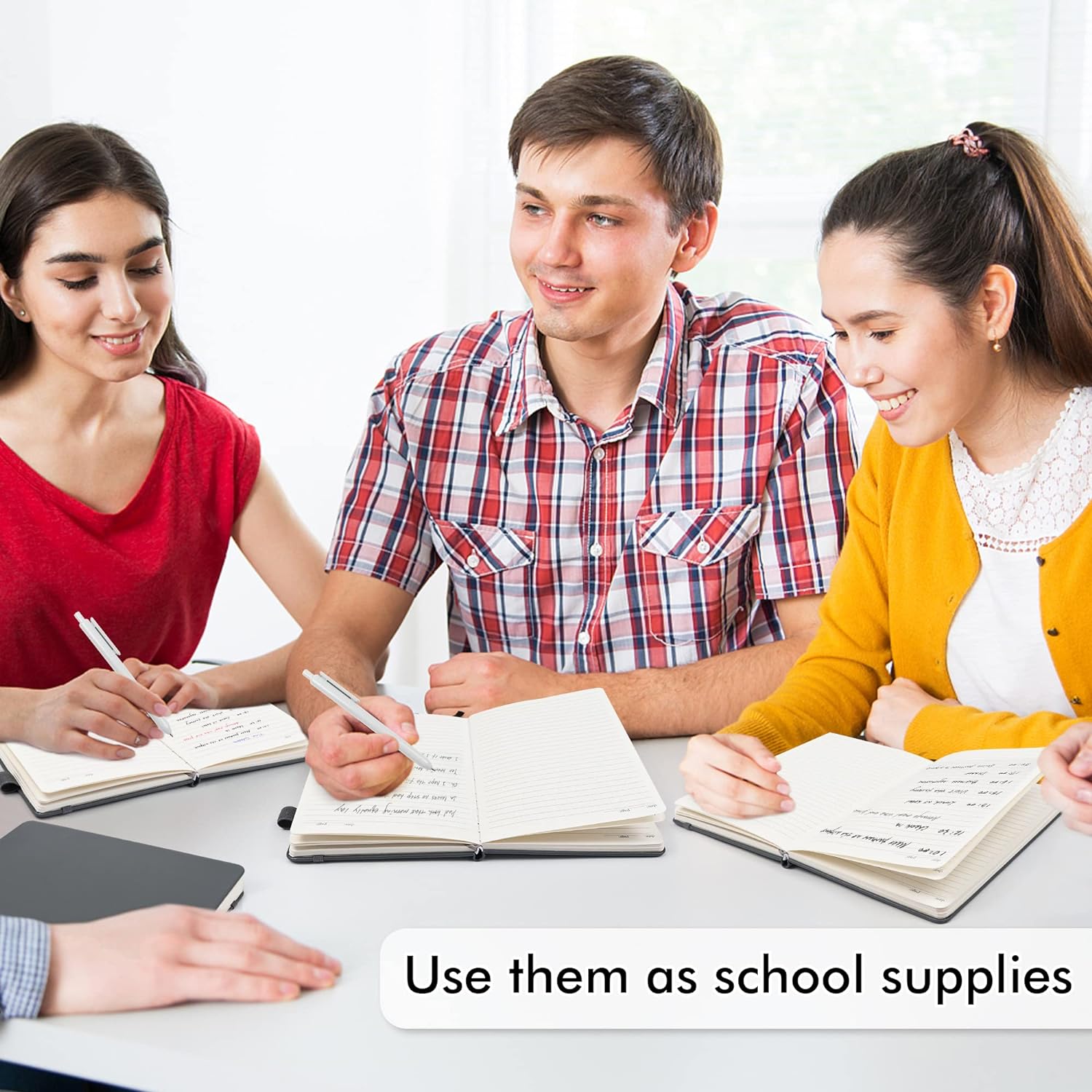 - There are 5 Black Retractable Pens in the box. You can use it as soon as you receive it. These pens are perfect to be put in the pen holder of the classic ruled notebook. Large tube has the capacity of restoring more ink, which makes them long lasting. Quick drying can avoid smearing and smudge.