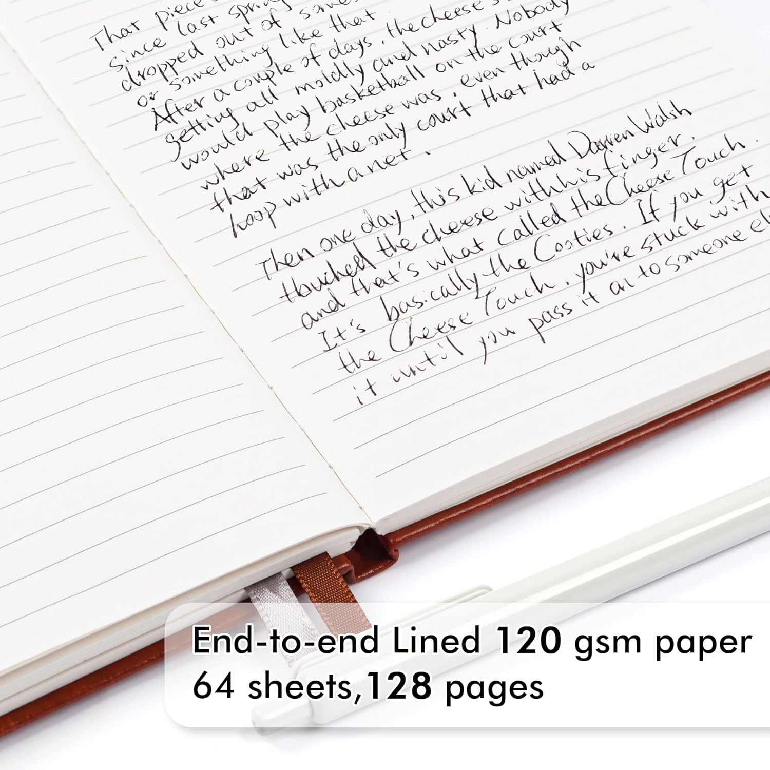 • These classic ruled notebooks are all blank inside with 128 lined pages (64 sheets), which would be convenient for daily usage. The hard cover journal has a water-resistant faux leather cover, round corners and bookmarks, which is designed to lay and open flat. There’s a “date/page” column on the top of every page. You can use it as a reminder to let you remember those important dates and find the page you want in a very short time.
