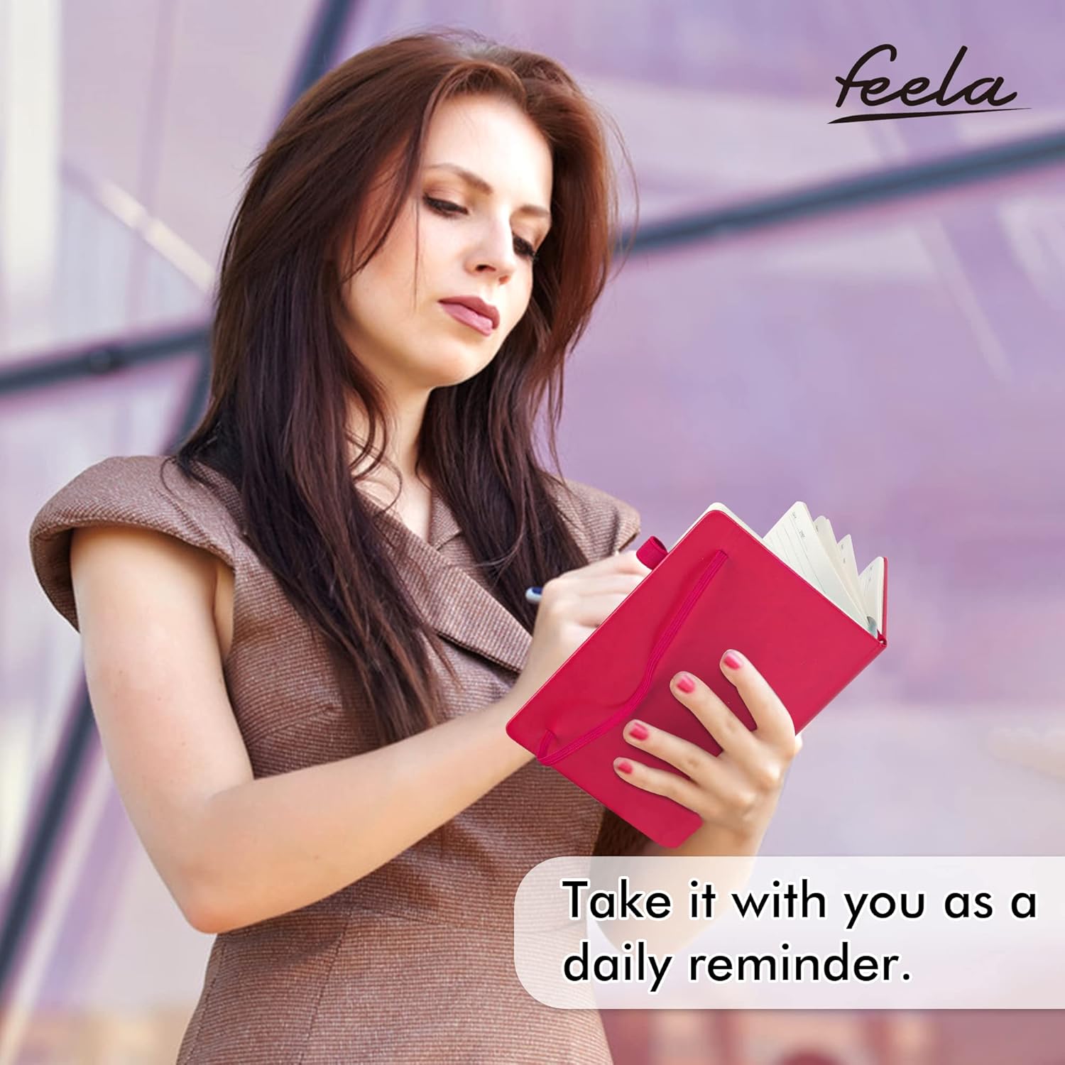 feela 12 Pack Notebooks Journals Bulk, Hardcover Notebook Classic Ruled Lined Journals with Pen Holder for Women Girls School Business Supplies, with 12 Black Pens, 120 GSM, 5.1”x8.3”, A5, Berry