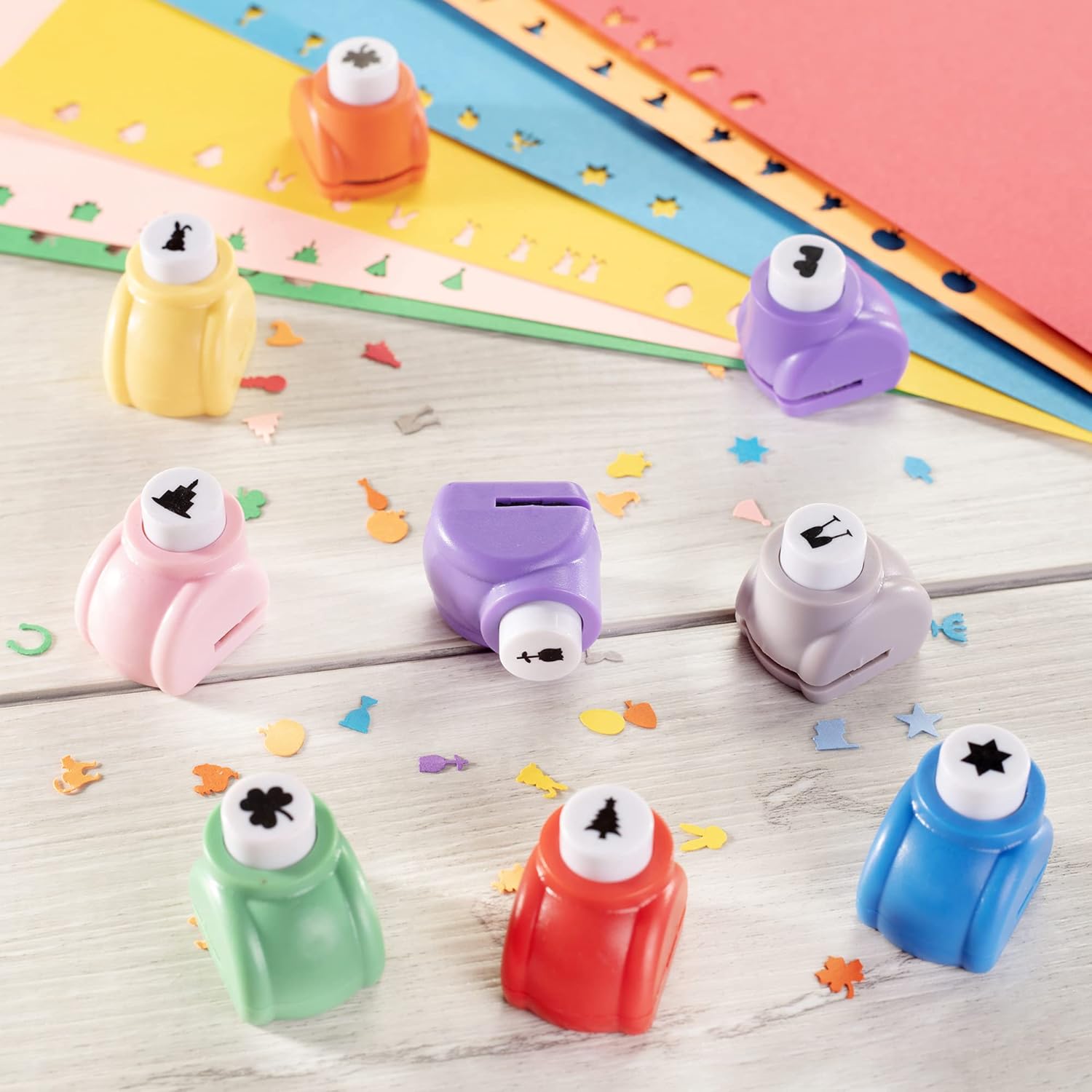 - Mini Scrapbook Paper Hole Puncher 40 pc holiday set featuring Christmas, Hanukkah, Easter, Thanksgiving, Valentine's Day, New Years, Fourth of July, Birthday, Halloween, and St. Patrick's Day!