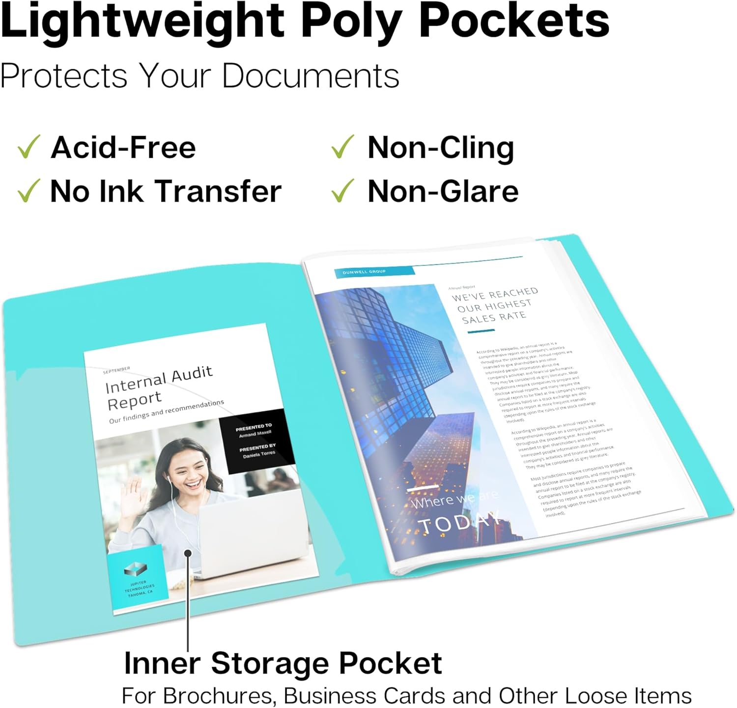 Dunwell 9x12 Presentation Binder with Clear Plastic Sleeves (Aqua), Folder for Artwork, 24 Pockets Display 48 Pages of 9 x 12 or A4 Size Documents, Kids Art, Keepsakes, Acid-Free Poly Portfolio Binder