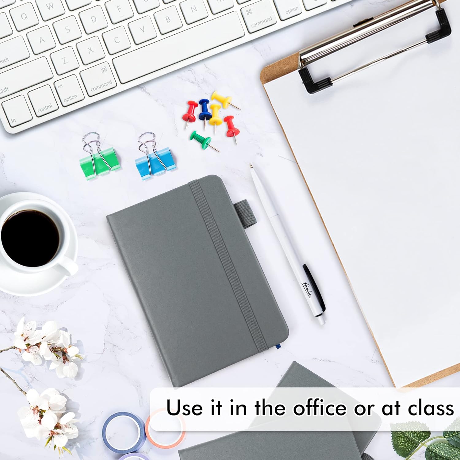 - Feela 6 Pack College Ruled Gray Notebooks contains 6 college ruled sturdy cover notebooks and 6 Black Retractable Pens. Each of the notebooks measures 3.5” x 5.5”, which is perfect to carry and easily held by young girls and boys. These black cute pens are customized to be placed in the pen holder, which is pretty convenient.