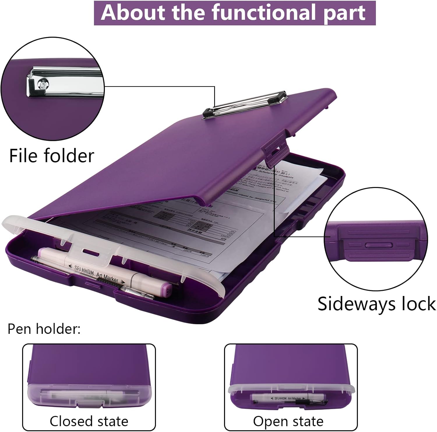 Clipboard with Storage,A4 Binder Clipboards with Pen Holder Nursing Clipboards,Clip Boards 8.5x11 with Storage-Side Open,Storage Clipboard with Low Profile Clip,Clip Board for Office Supplies-Purple