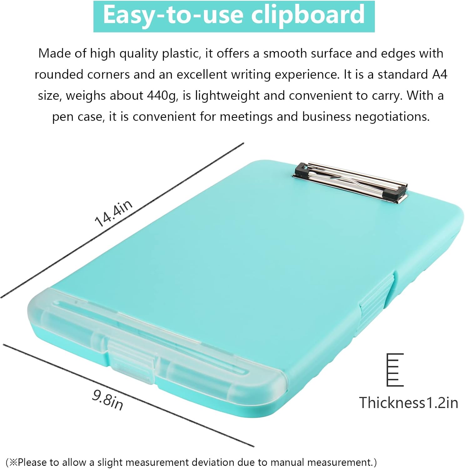 Clipboard with Storage,A4 Clipboards with Pen Holder,Heavy Duty Plastic Storage Clipboard with Low Profile Clip,Nursing Clipboards Folder Side-Opening,Smooth Writing Clip Board for Office-Blue Green