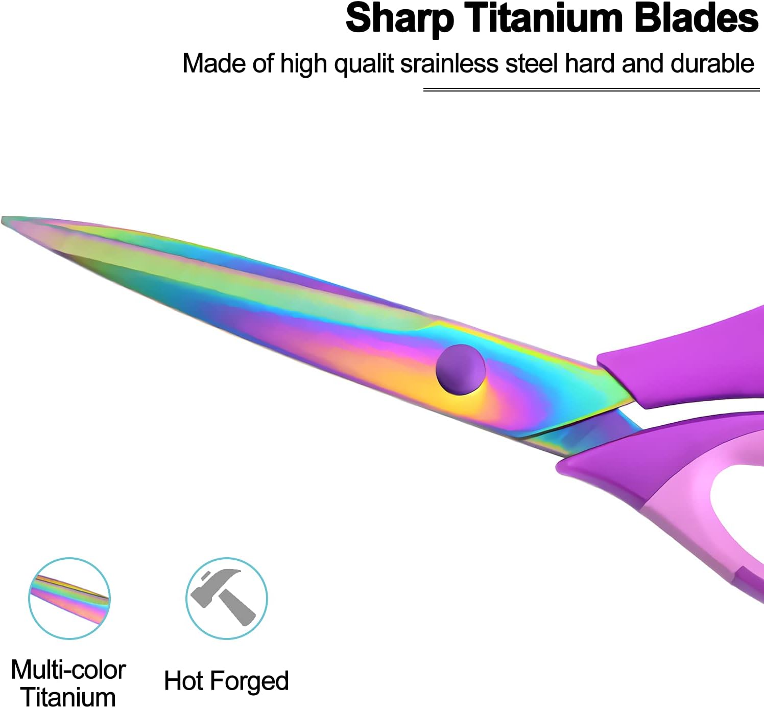 Craft Scissors Set of 3 Pack, All Purpose Sharp Titanium Blades Shears, Comfort Grip Handle, Multipurpose Fabric Scissors Tool Great for Adults, Office, Sewing, School and Home Supplies, Purple