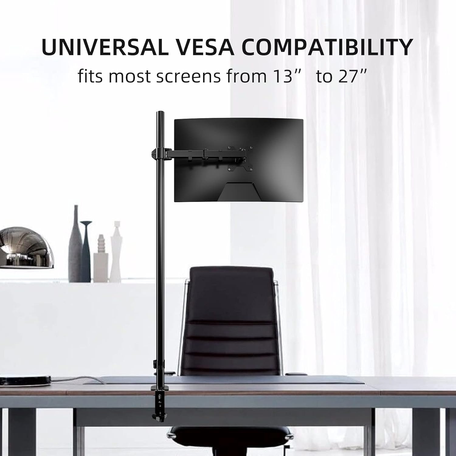 Pholiten Extra Tall Single Monitor Desk Mount Stand with 47 inch Pole for 13 to 27 inch Screens,Fully Adjustable Monitor Arm Mount for Desk, Holds up to 22lbs