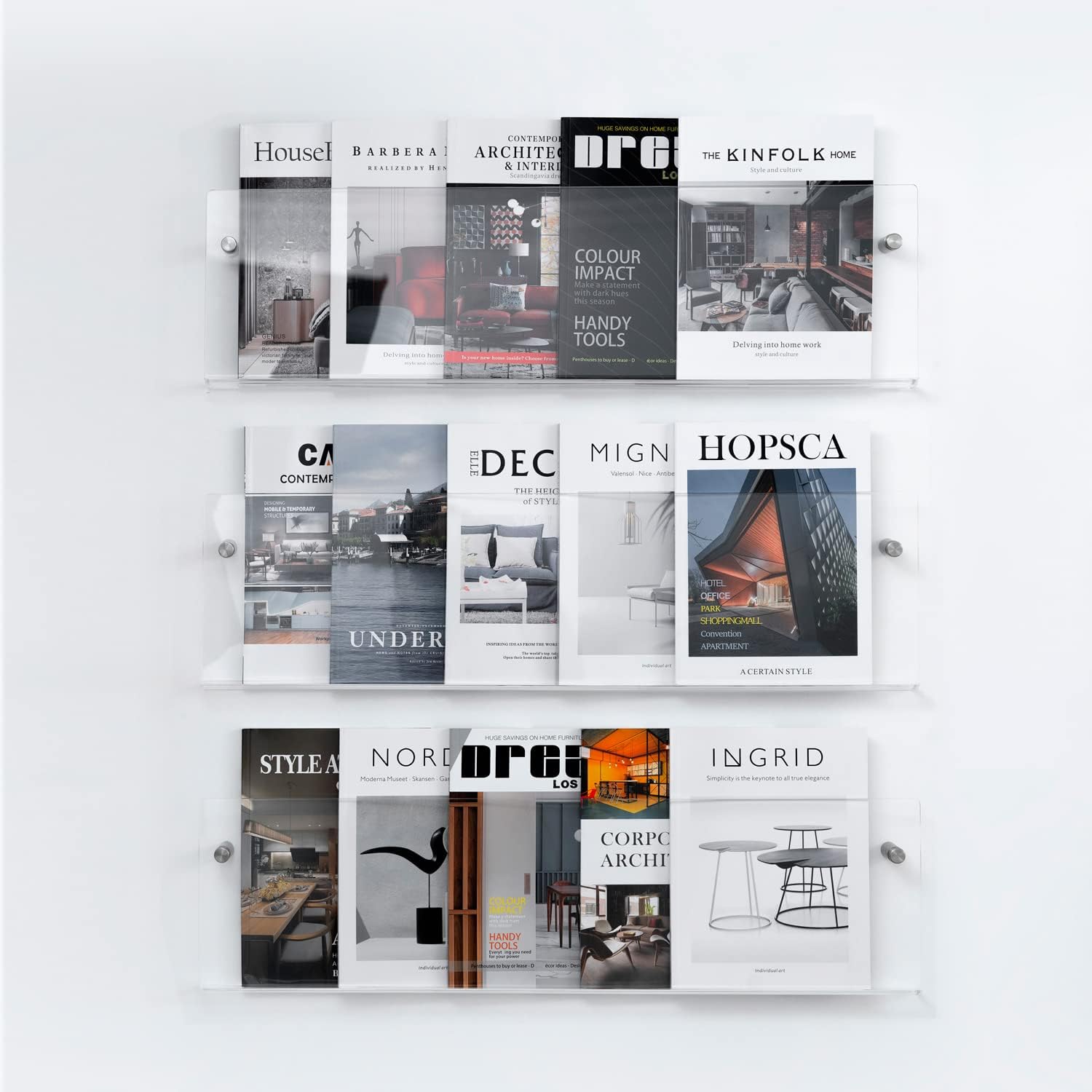 - Our magazine rack is made of high-quality, lightweight and scuffing-resistant acrylic and its thickness is 5mm, which has a long service life. It does not have sharp edges and itβs not too heavy, which looks clean and professional.