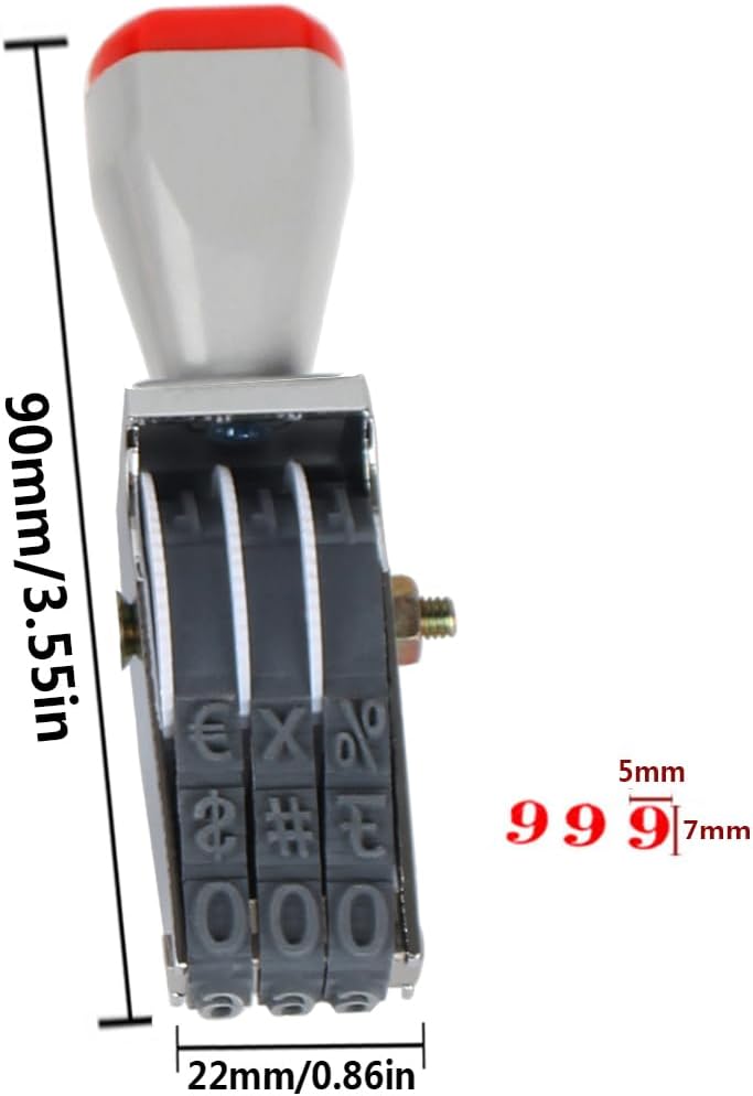 - Traditional 3 digit rubber stamps, Material : Metal, Rubber, Plastic; Size:Length :90 mm/3.54 in,Width:20 mm/0.78 in,High:25 mm/0.98 in, Character : Width:4 mm /0.15 in,Height:7 mm/0.27 in, Color : Gray black; Weight: 40 g; Package Content : 2 X Numbering Stamp (Without ink,Requires a separate ink pad)
