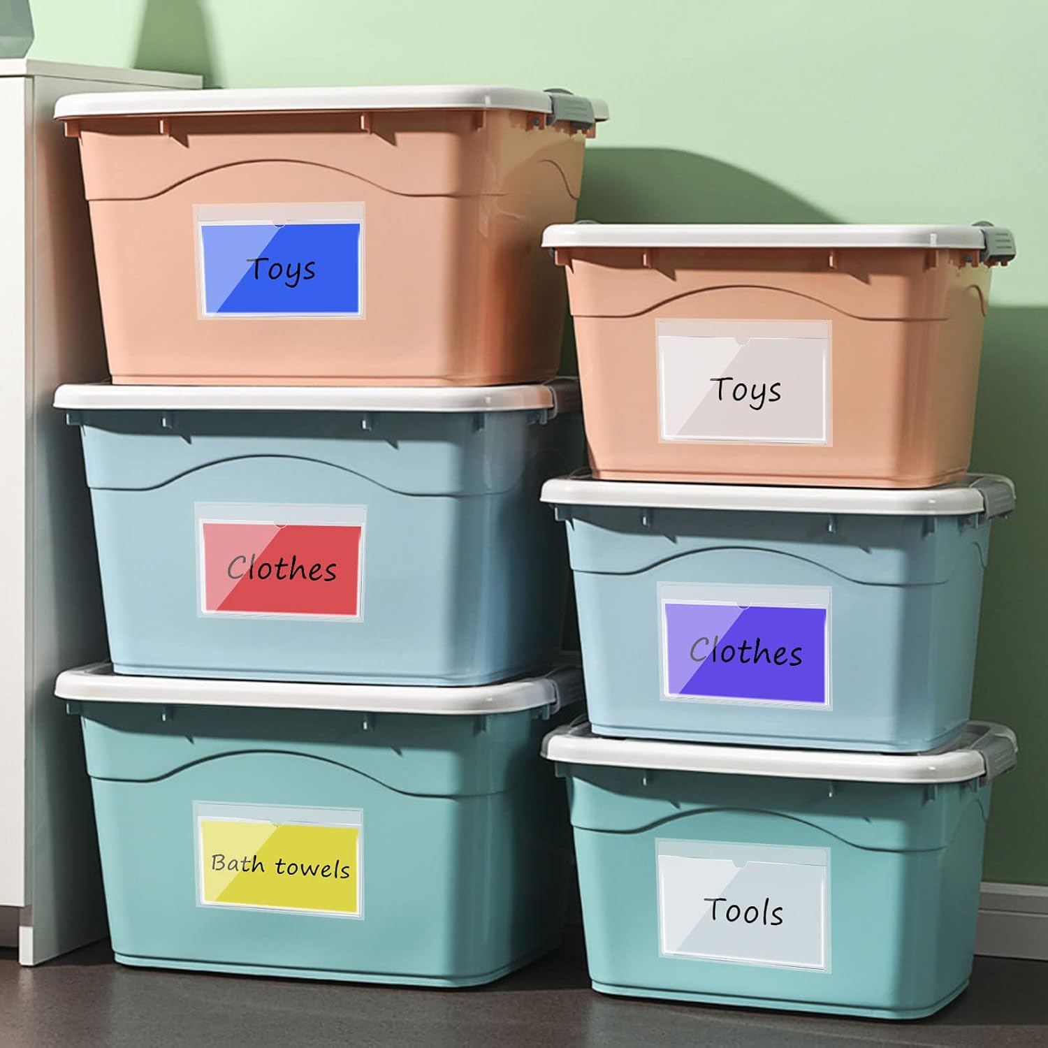 - Easy to Identify: adhesive pockets are double-sided transparent, the smooth and clear front side is to view information and easy to read through; They were exactly what you need to label the storage bins, lockers and drawers