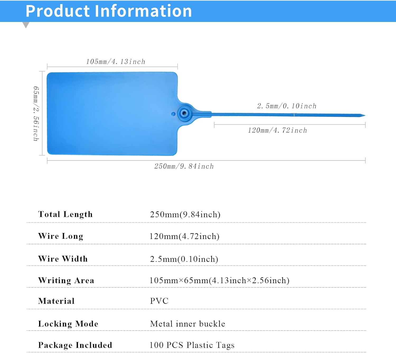 - 1. Specification: Plastic Label Tag Size: 100*58 mm/3.94"*2.28", available locking length: 148mm/5.83", Material: High Density Polypropylene.