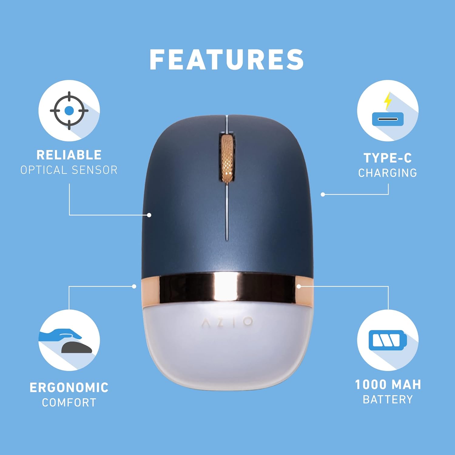 - Stylish blue and gold wireless optical mouse by AZIO