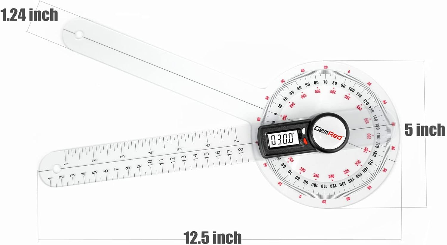 GemRed 12" Digital Goniometer for Joint Range of Motion ROM Measurement(GR311 New Version)