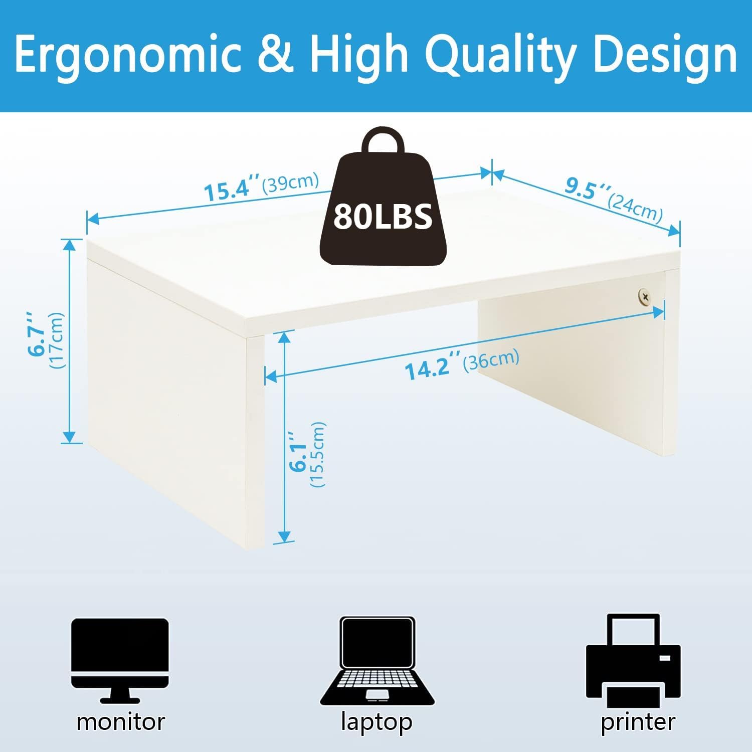 TEAMIX 6.7 inch Height Monitor Stand Riser, Wood Monitor Riser with Storage for Desk Small Monitor Stand TV/Screen/PC/Laptop Riser Computer Stand Desktop Shelf (White-Higher)