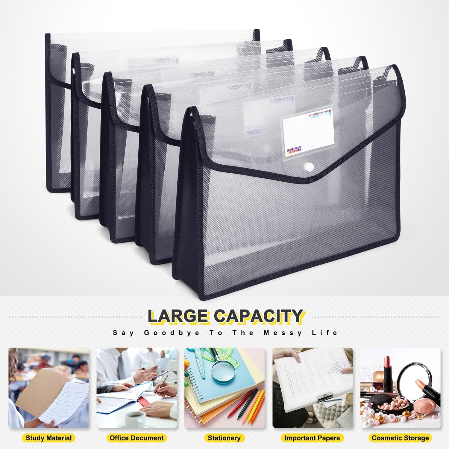 - Excellent Performance: The file Organiser can be used for portfolios or conferences and is great for storing important documents on the desk, With its sleek and smart design, you will look professional, taking this to any business meeting or using it for work! This Plastic File Wallet is also the perfect choice for children to develop the habit of organizing files. Plastic Folders with great snap closure and identification labels, is safer and convenient keeper
