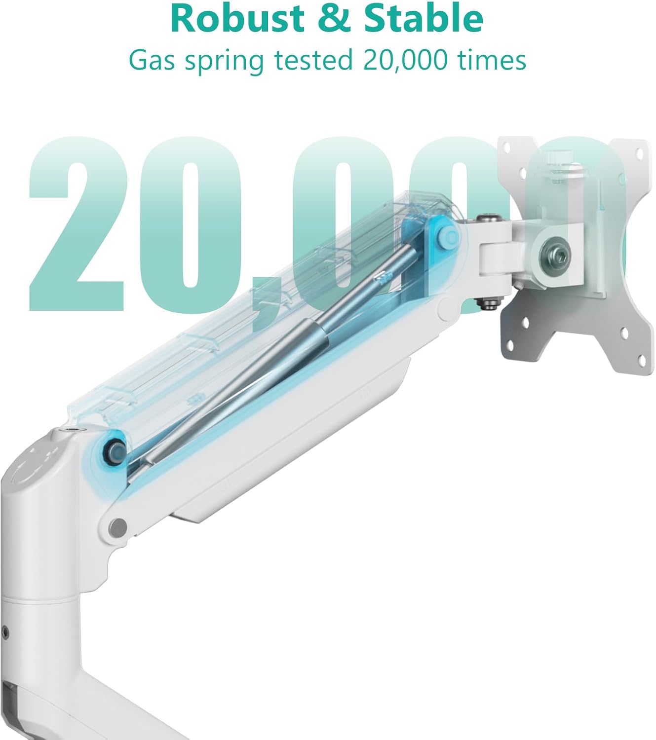 - Package includes: WALI Single Monitor Arm Gas Spring Mount (White) x 1, Mounting Hardware Kit, User Manual, experienced and friendly US based customer support available to assist 7 days a week