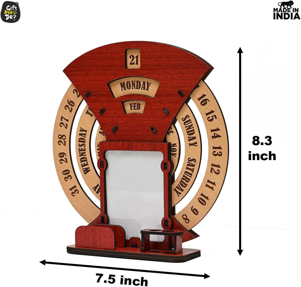 GKD Wooden Desk/Table Calendar to Lifetime Infinite Calendar 2025 with Desk Organizer and Photo Frame for Office/Home (‎Red)
