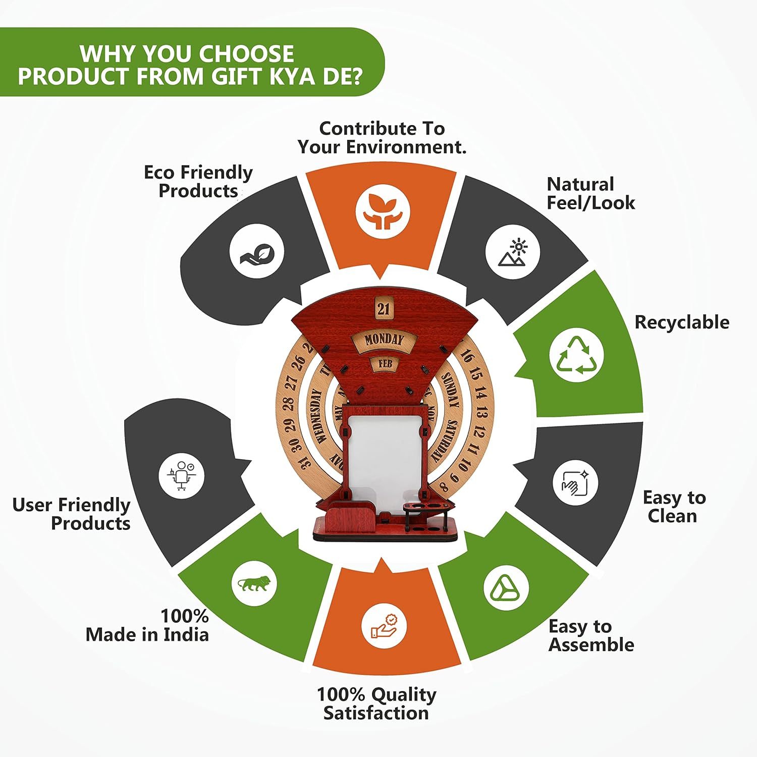 • Designer Home Decor: The beautiful designer calendar 2023 , where you can keep your photo, pen, and cardholder that serve as the perfect piece of home and office decor. Three individual circular rings dedicated to dates, days, and months are placed in an indigenous manner, which may be rotated very easily and precisely to change days, dates, and months to give you a new day every day. This calendar for desks is not limited to any particular year.