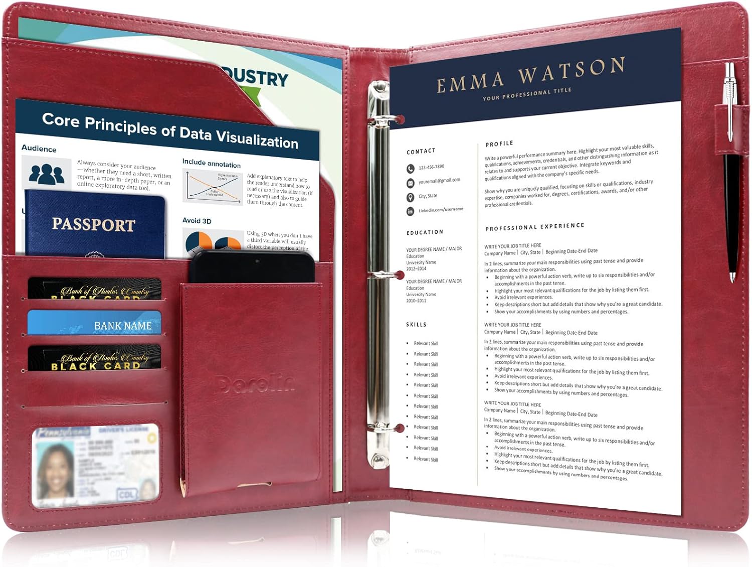 Darolin Business/Resume Padfolio with 3 Ring Binder, Interview/Conference/Legal Document Organizer, Leather Portfolio for Women/Men
