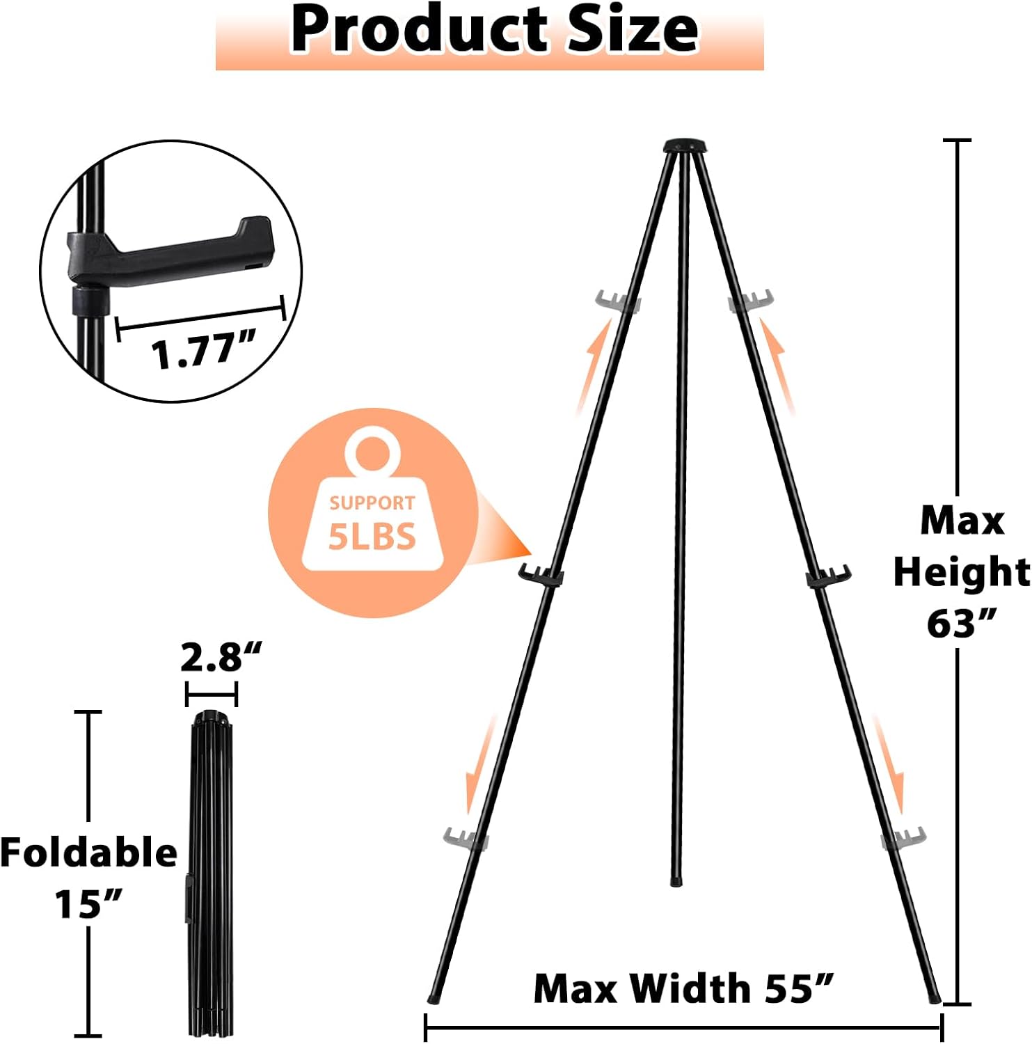 Instant Display Easel Stand, 63" Collapsible Portable Adjustable Height Art Easel - Easy Folding Telescoping Metal Floor Poster Tripod for Display, Black(3 Pack)