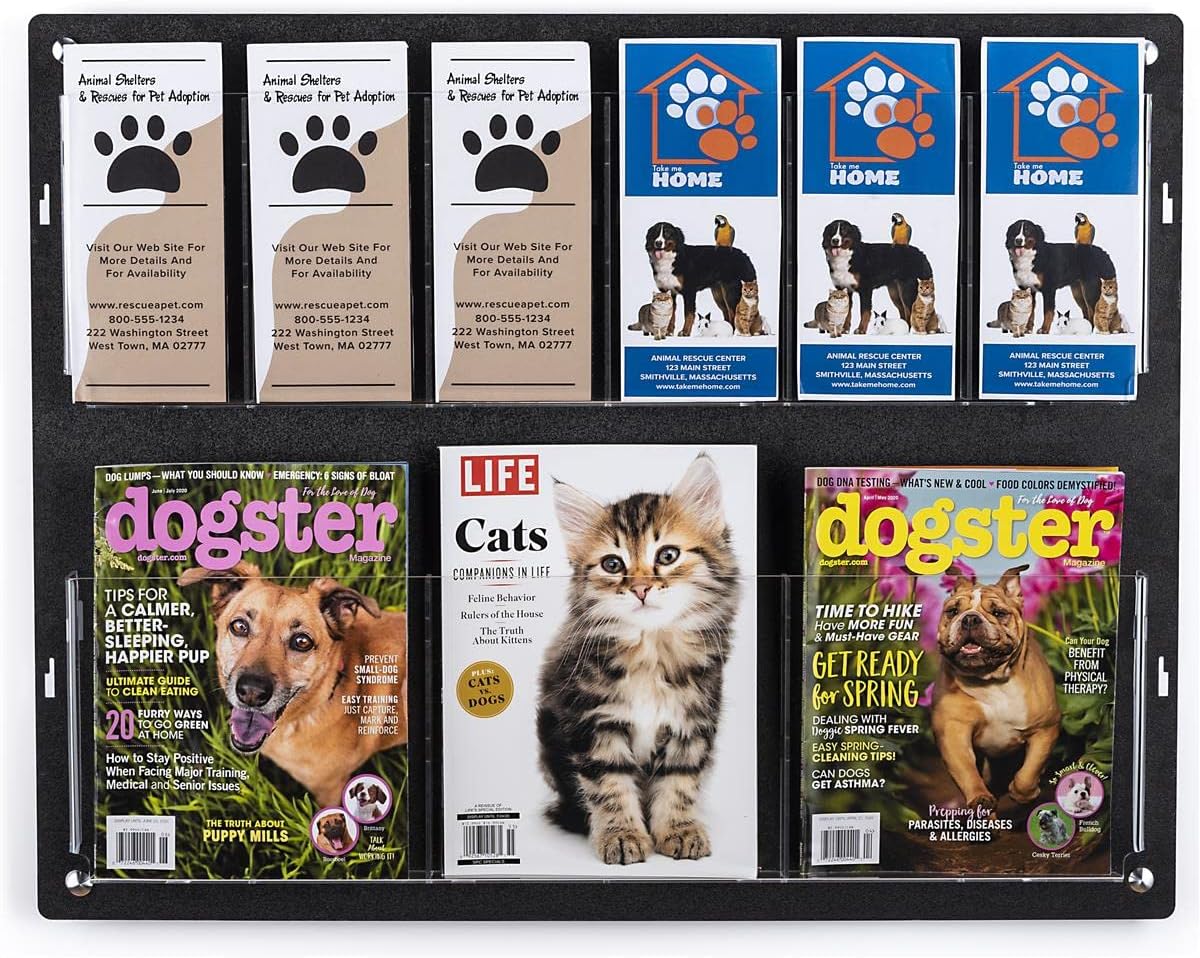 - Holds publications 4" or 8.5" wide