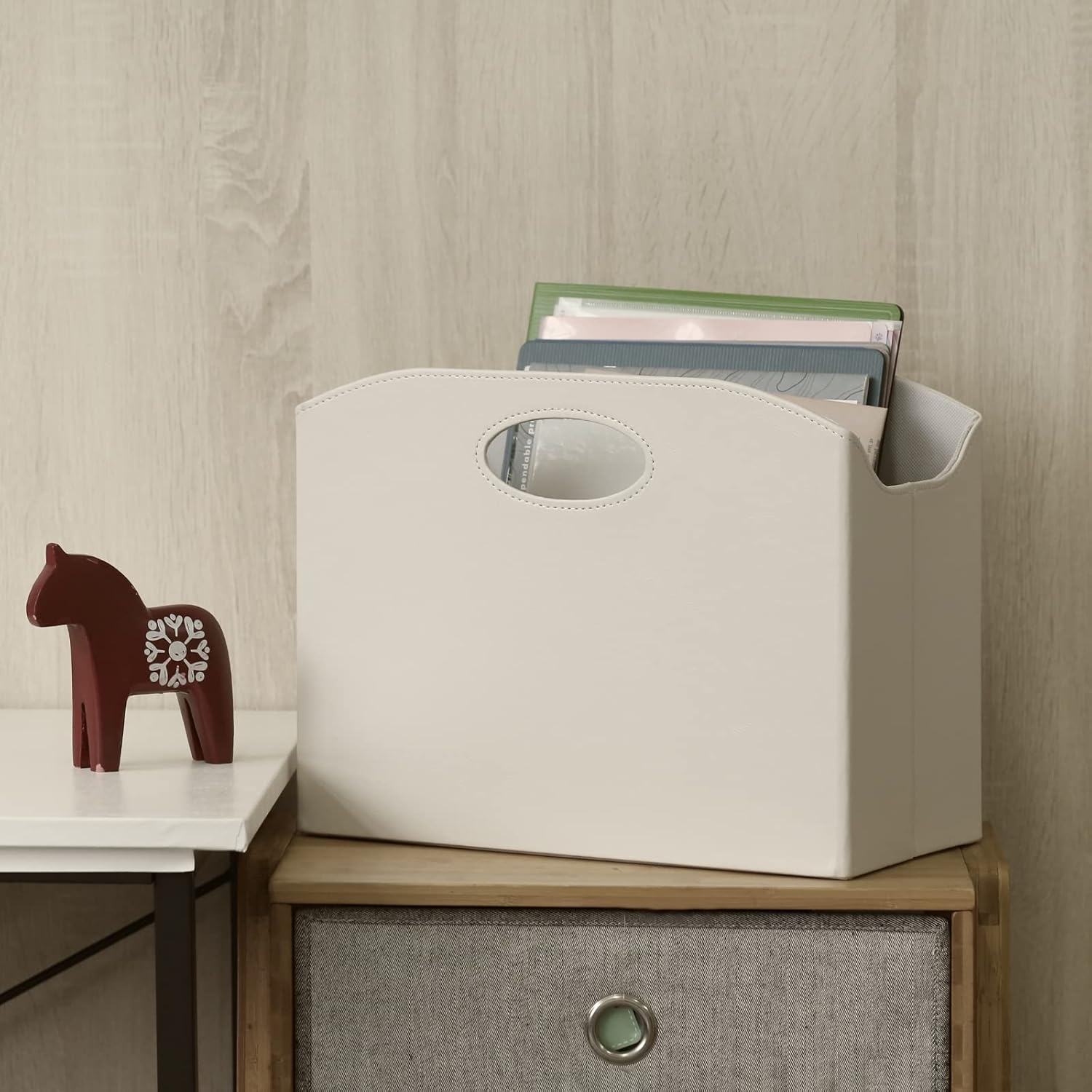 - Perfect for home or office - Magazine organizer bin is perfect for storaging on the floor or tabletop.Keep your favourite magazines and books within easy reach and your space tidy with this lightweight, portable and spacious holder by placing it at your living room, bedroom, study room, home office or entryway.