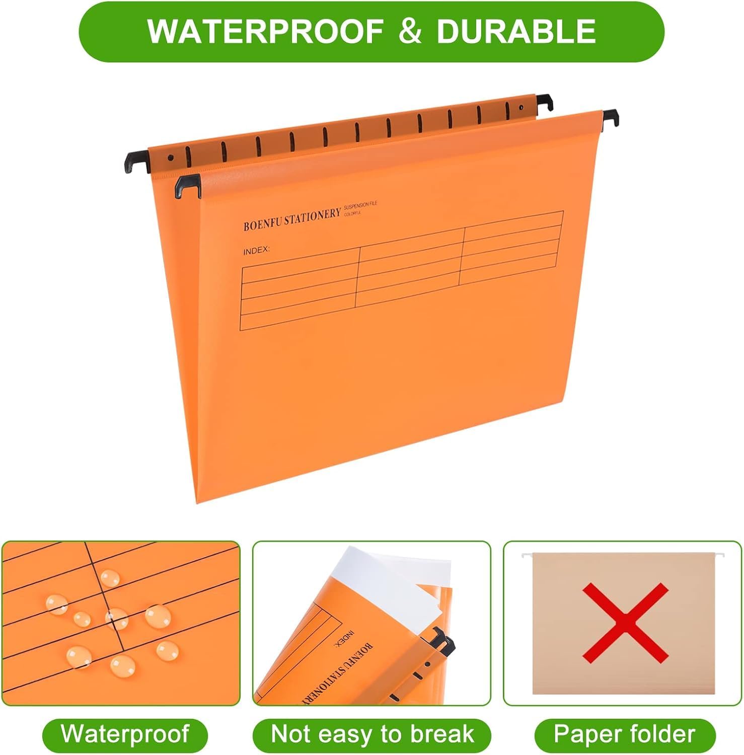 - High-quality Material: The material of the letter size hanging file bag is PP, which is made of top-quality PP material. It is different from other Paper hanging file bags on the market, and it is not easy to tear and damage. The rails are made of metallic material,durable. As the same time ,can be firmly stuck to the slide rail and is not easy to fall
