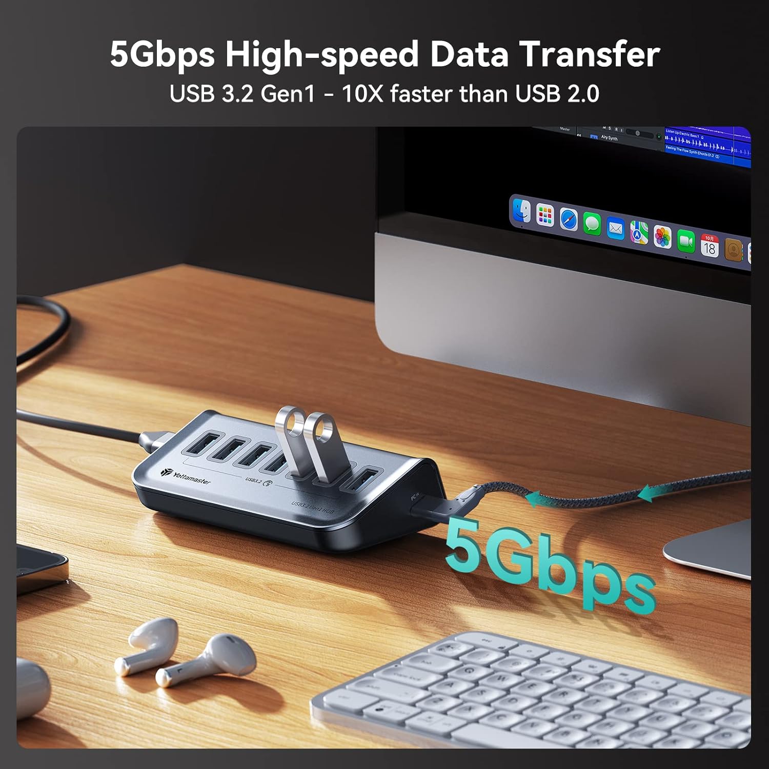 Yottamaster 7 Port USB 3.0 Hub, Data USB Hub Splitter with 3.2ft Cable Compatible with MacBook, Mac Pro, Compatible with Mac Mini, iMac, Laptop, PC, USB Flash Drives, Mobile HDD, Printer (3.2ft)