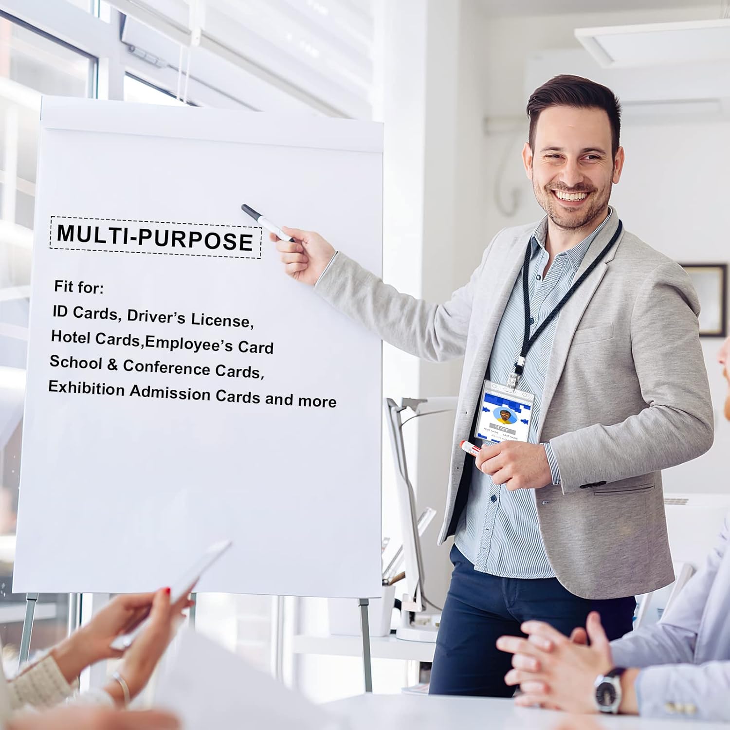 • Widely used: These ID Badge holders are perfect for factory workers, students, and office workers. Perfect for conferences, seminars, offices, trade shows, concerts, weddings, schools, security or other events that require badges or ID cards, name tags, credit cards, cardholders, keys