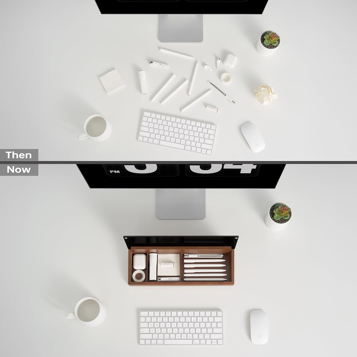 - MULTI-FUNCTIONAL | This Desktop Dry Erase Board & Desk Organizers Designed to Sit Between a Keyboard and Monitor. The Glass Writing Surface for Note Taking / To Do List / Reminder, a Perfect Alternative of Sticky Notes, Help Cutdown Your Paper Use, Save the Environment. It's Wood Organizer for Easy Storing and Accessing of Desk Accessories, Save Space and Declutter Your Desktop.
