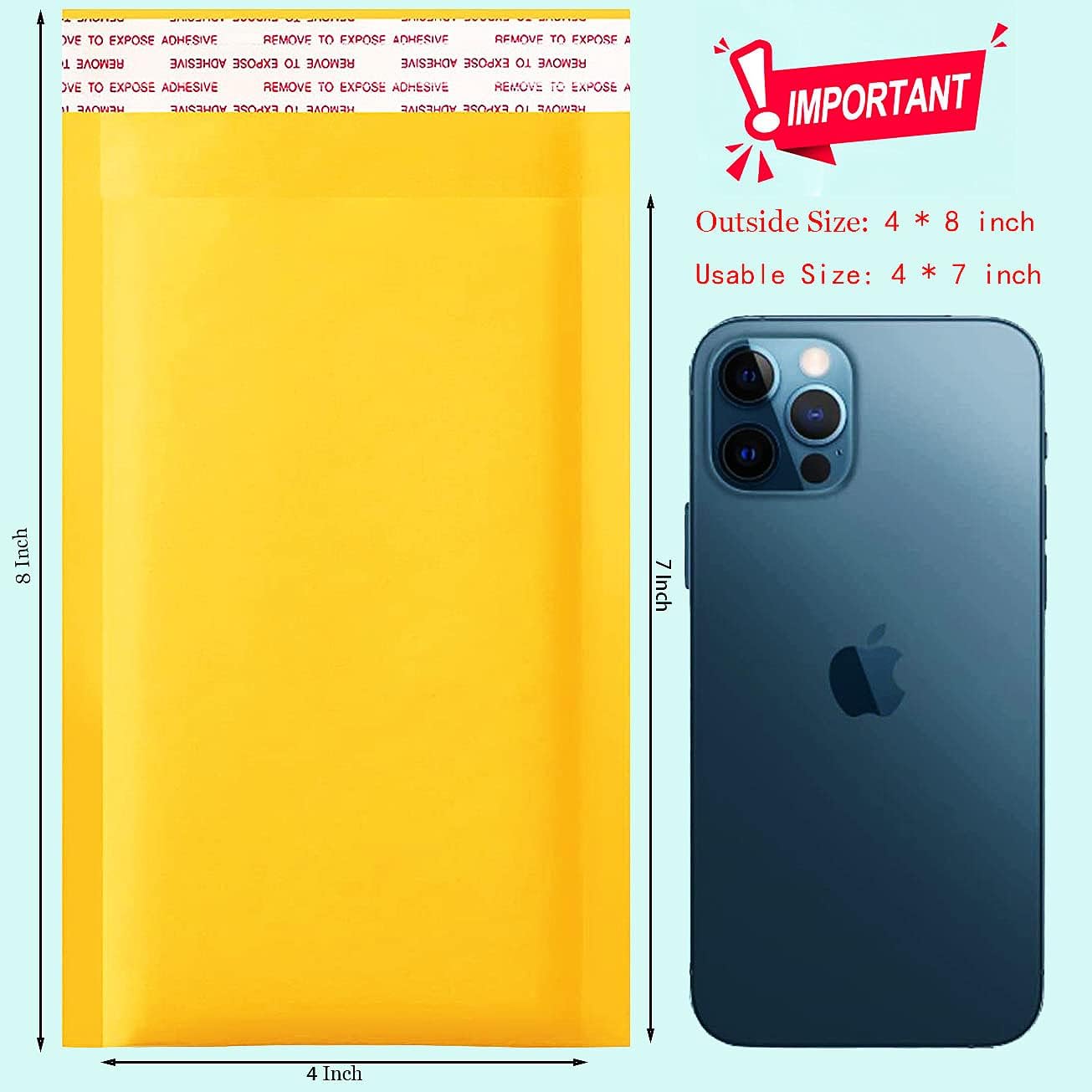 packbabol Kraft Bubble Mailers 4x8 Inch 100 Pcs,Small Self-Sealing Mail Shipping Bags,Yellow Padded Envelopes #000
