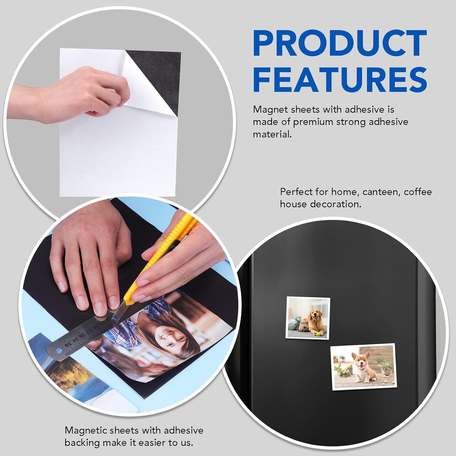 - 【Unique Decoration】This flexible and durable magnet sheets with adhesive is perfect for home, canteen, coffee house decoration. Magnetic sheet makes your photos, pictures, drawings, etc. appreciated by guests!