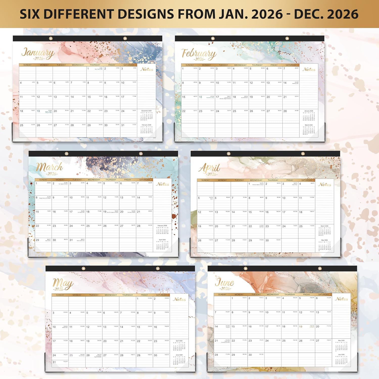 • PROFESSIONAL MONTHLY CONTENT DESIGN - Standard holidays marked and federal holidays highlighted + Ruled daily blocks (1.95" x 1.63") keep plans neat and legible + Full-year monthly reference on the bottom + Julian date + Note part. Every month features different color of quicksand background and 18 monthly mini overview calendars for the full year of 2026. Desk calendar 2026 with large ruled writing space to track deadlines, special events with clear organization.