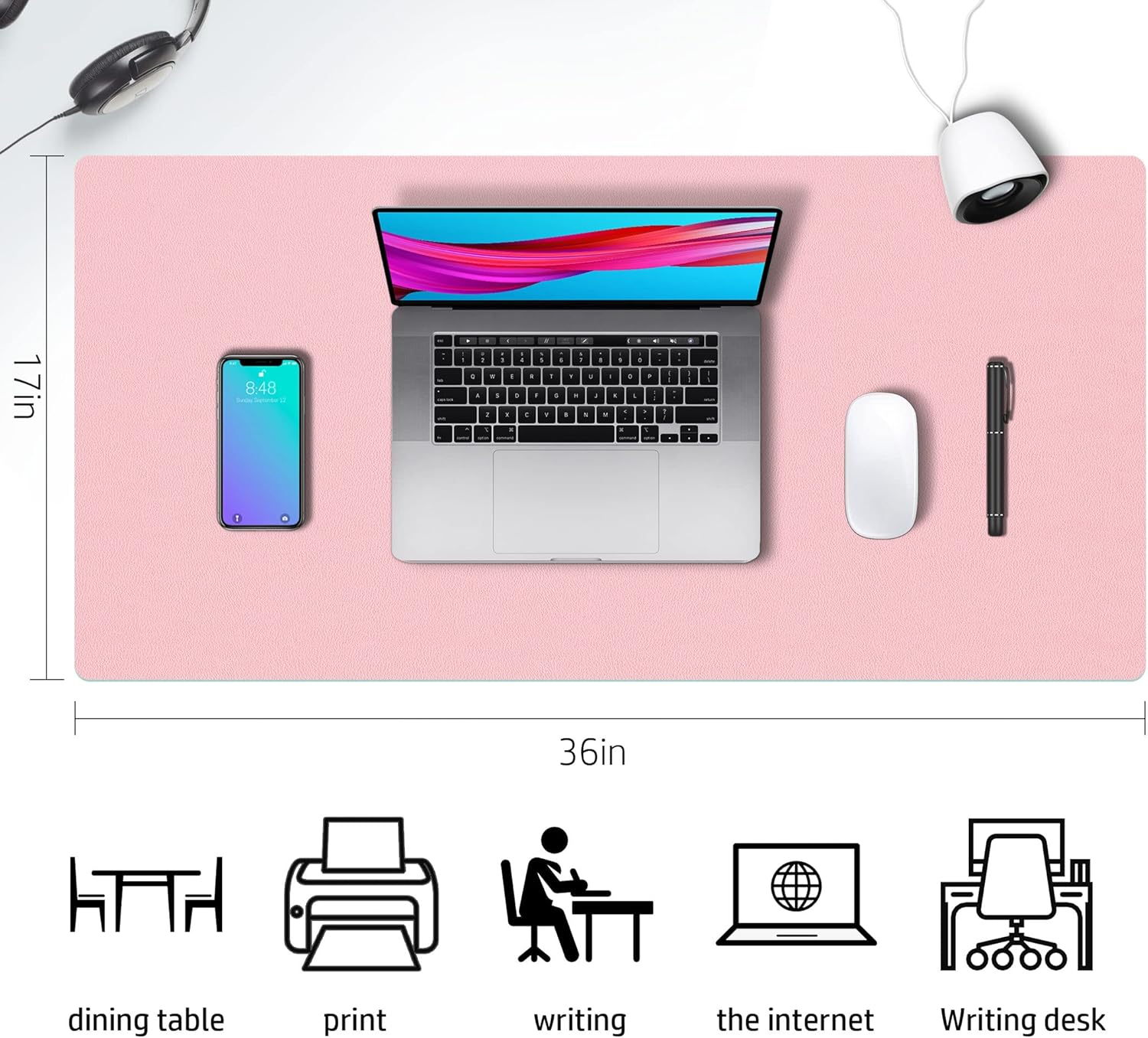 Desk Mat Large Protector Pad - Multifunctional Dual-Sided Office Desk Pad,Smooth Surface Soft Mouse Pad, Waterproof Desk Mat for Desktop, Pu Leather Desk Cover for Office/Home(Pink, 36" x 17")