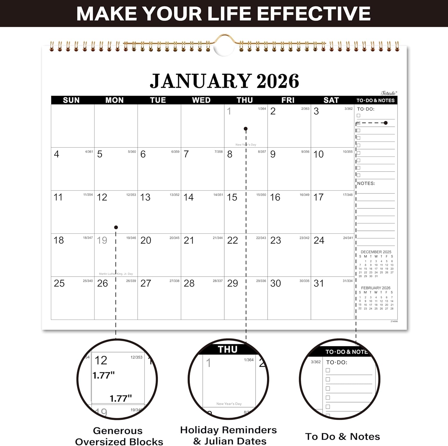 - š 2026 Calendar Monthly Page - Each page of this 18-month calendar has Large Daily Blocks (1.77'' x 1.77''), Notes Section, To-Do List for you to itemiz your monthly goals and important things. Besides, Highlighted Holidays and Julian Dates can inform you to arrange the holidays in advance and know the passed and the remaining days of the year.