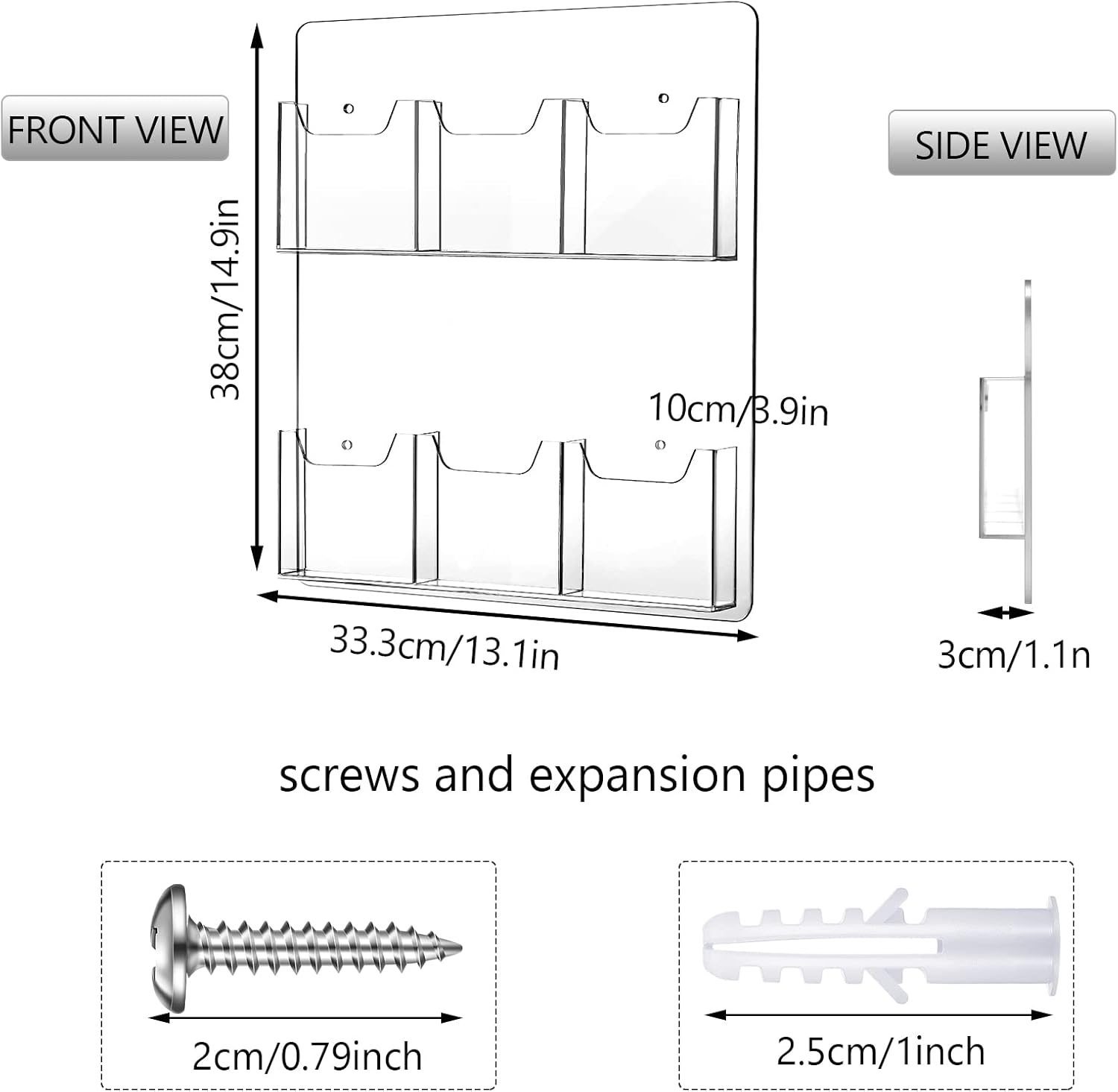 - Suitable Size: the overall dimension of our acrylic brochure wall mount holders is 14.9 x 13.1 inches, each pocket dimension is 4 x 1 inch, and each pocket capacity is approx 50 postcards, this is a useful business card or gift card wall display solution