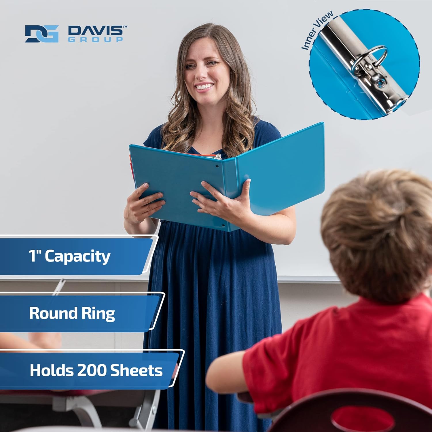 Easyview Premium 3-Ring Binders with Clear-View Covers and Round Rings, Binders for School or Office, 1 Inch, Pack of 4, Fashion Colors