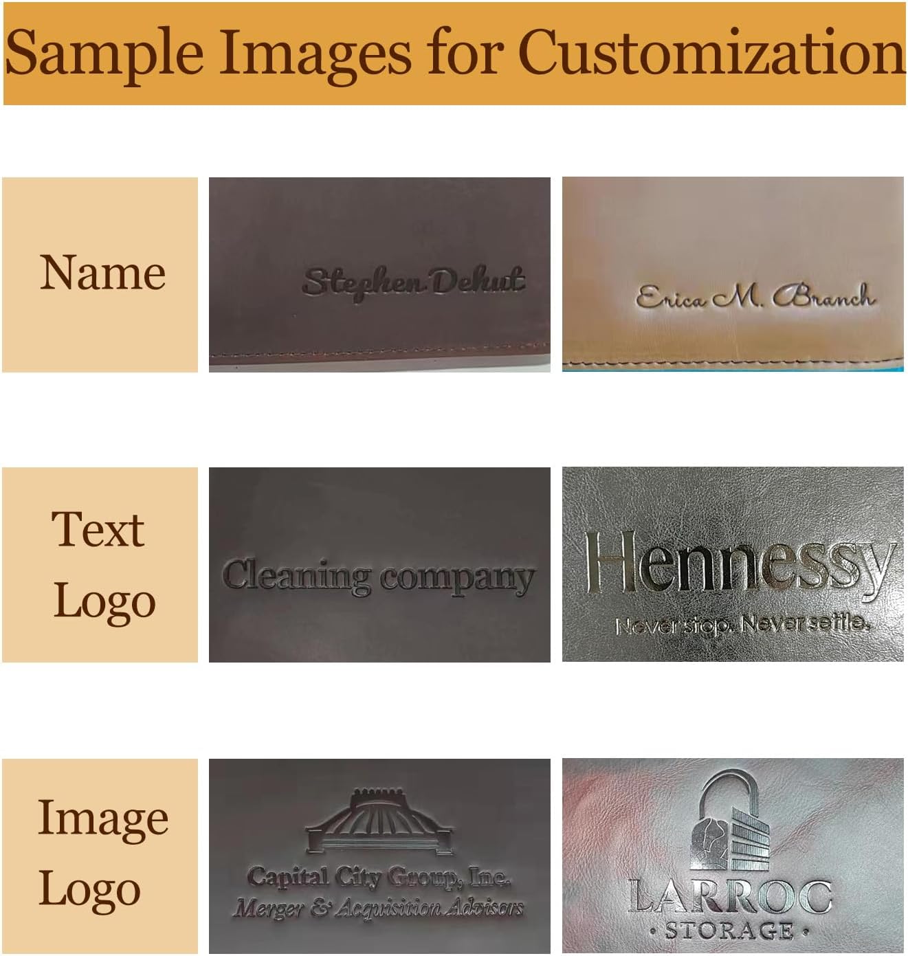 - Personalized Leather Portfolio: You can customize your name, which defaults to the lower right corner, or logo, which defaults to the middle. Simply choose your customization option and input the name or logo. If you have additional customization requirements, such as left-handed people, please feel free to contact us via email after placing an order. We will do our best to assist you.