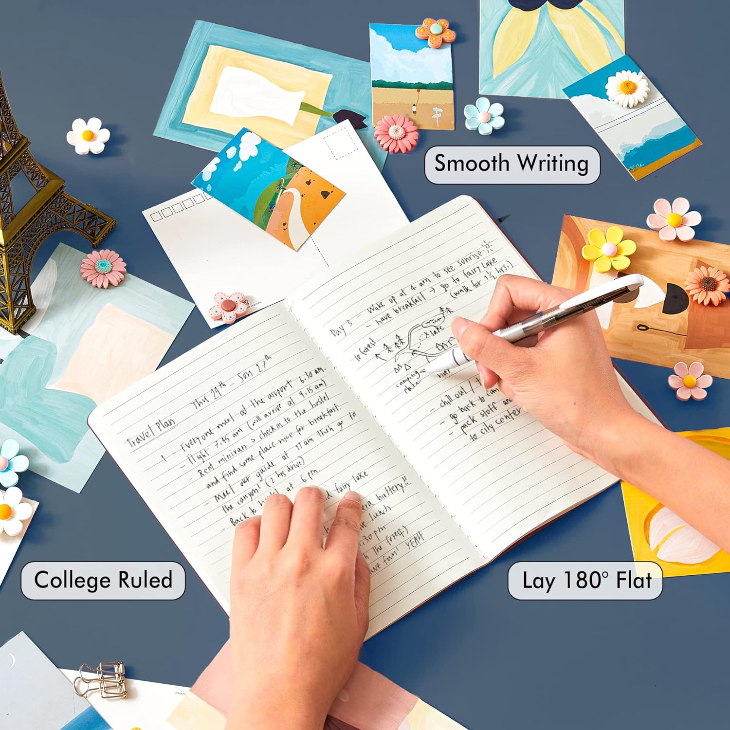 - These travel journals bulk for women have 84 blank lined pages (42 sheets), which would be sufficient for daily usage. The note taking notebooks have a smooth cover, round corners and tight stitching, which are designed to lay 180° flat. Some quick notes can help you remember important dates and find the page you want in a very short time.