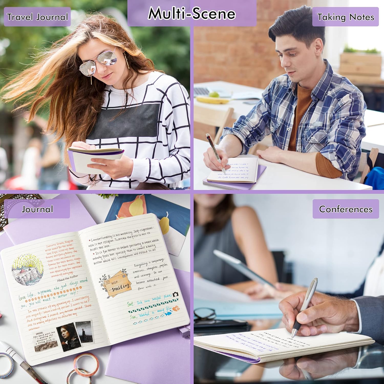 • Feela 36 Pack Soft Cover Journals include 36 light purple A5 college ruled soft cover travel journals. 250 GSM colored paper cover outside and 80 GSM smooth writing lined pages inside.