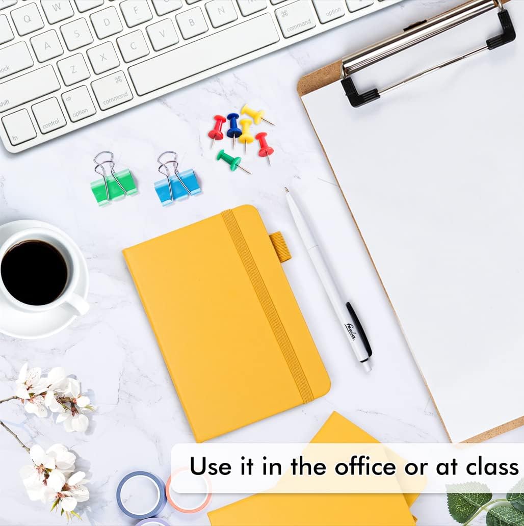 feela 6 Pack Pocket Mini Notebooks Bulk, Small Cute Memo Notepads Hardcover College Ruled Lined Journals with Pen Holder for School Business Work, with 6 Black Pens, 3.5”x 5.5”, A6, Yellow