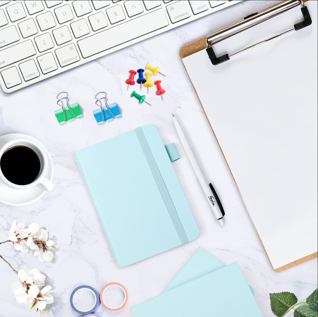 feela 15 Pack Pocket Small Notebooks Bulk, Mini Cute Memo Notepads Hardcover College Ruled Lined Journals with Pen Holder for Women Girls Office School, with 15 Black Pens, 3.5”x 5.5”, A6, Sky Blue