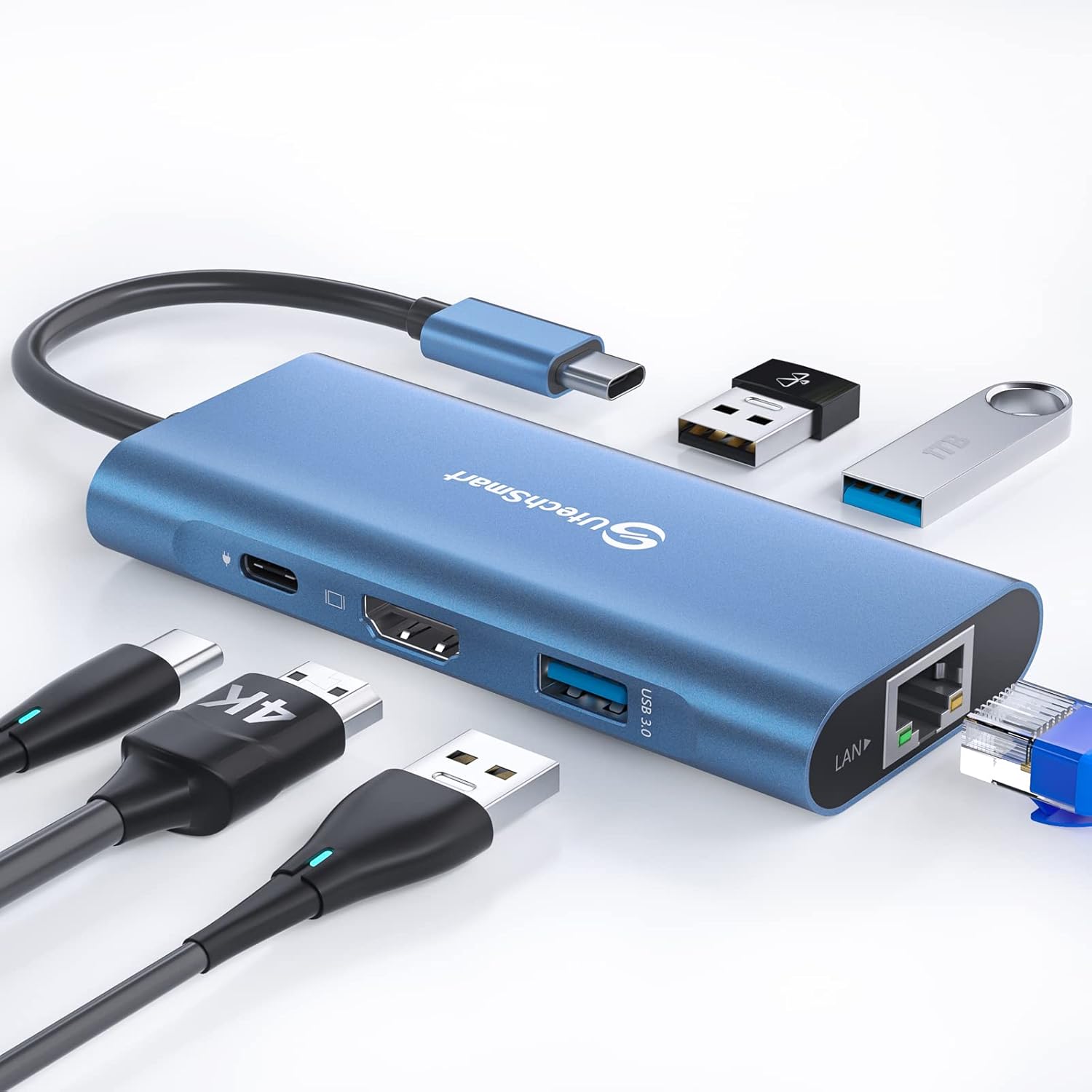UtechSmart USB C Hub, Ethernet Multiport Adapter 6 in 1 USB C to HDMI Dock Compatible for MacBook Pro/Air, Chromebook, Dell XPS, HP and Type C Devices (Gigabit Ethernet 100W PD 4K HDMI USB 3.0) Blue